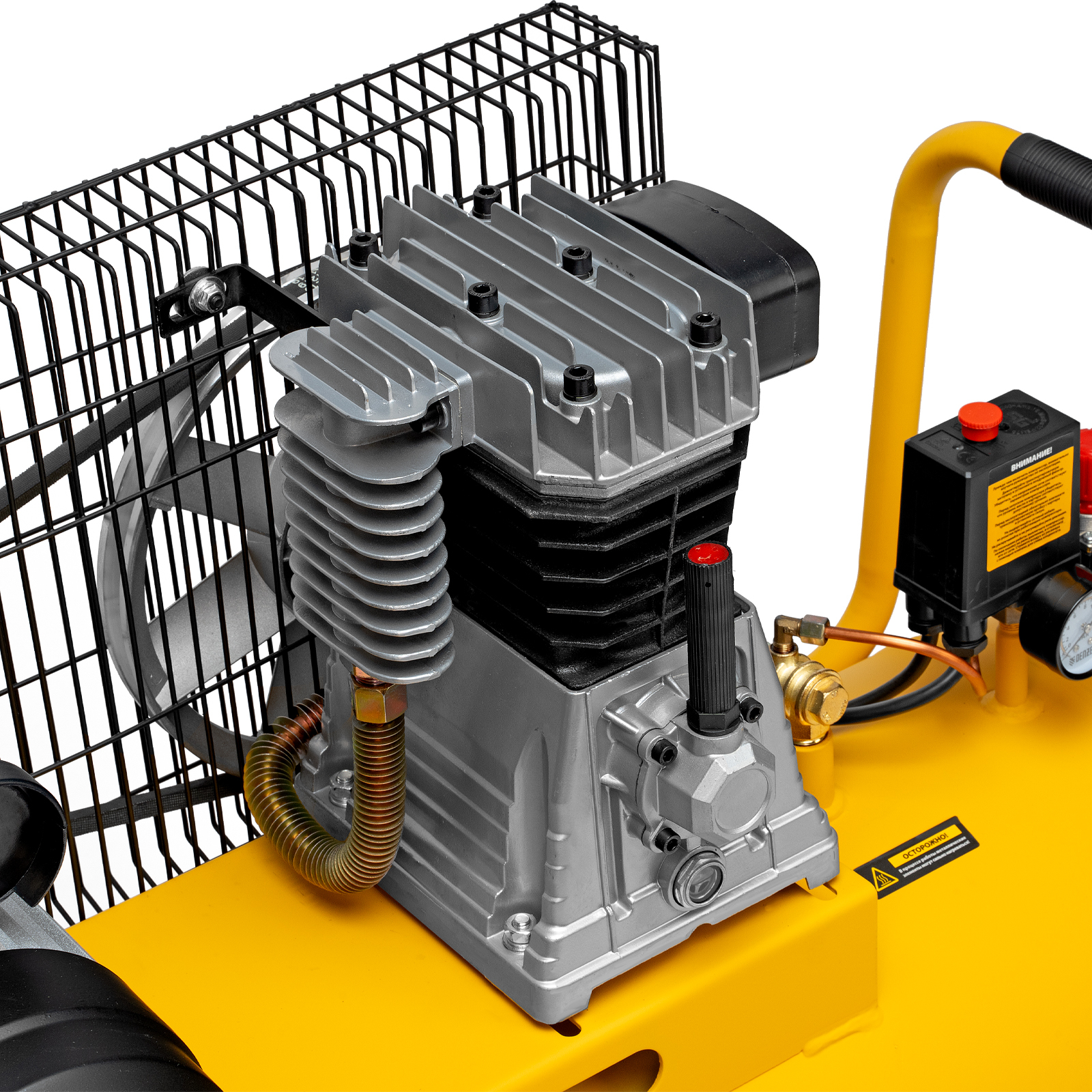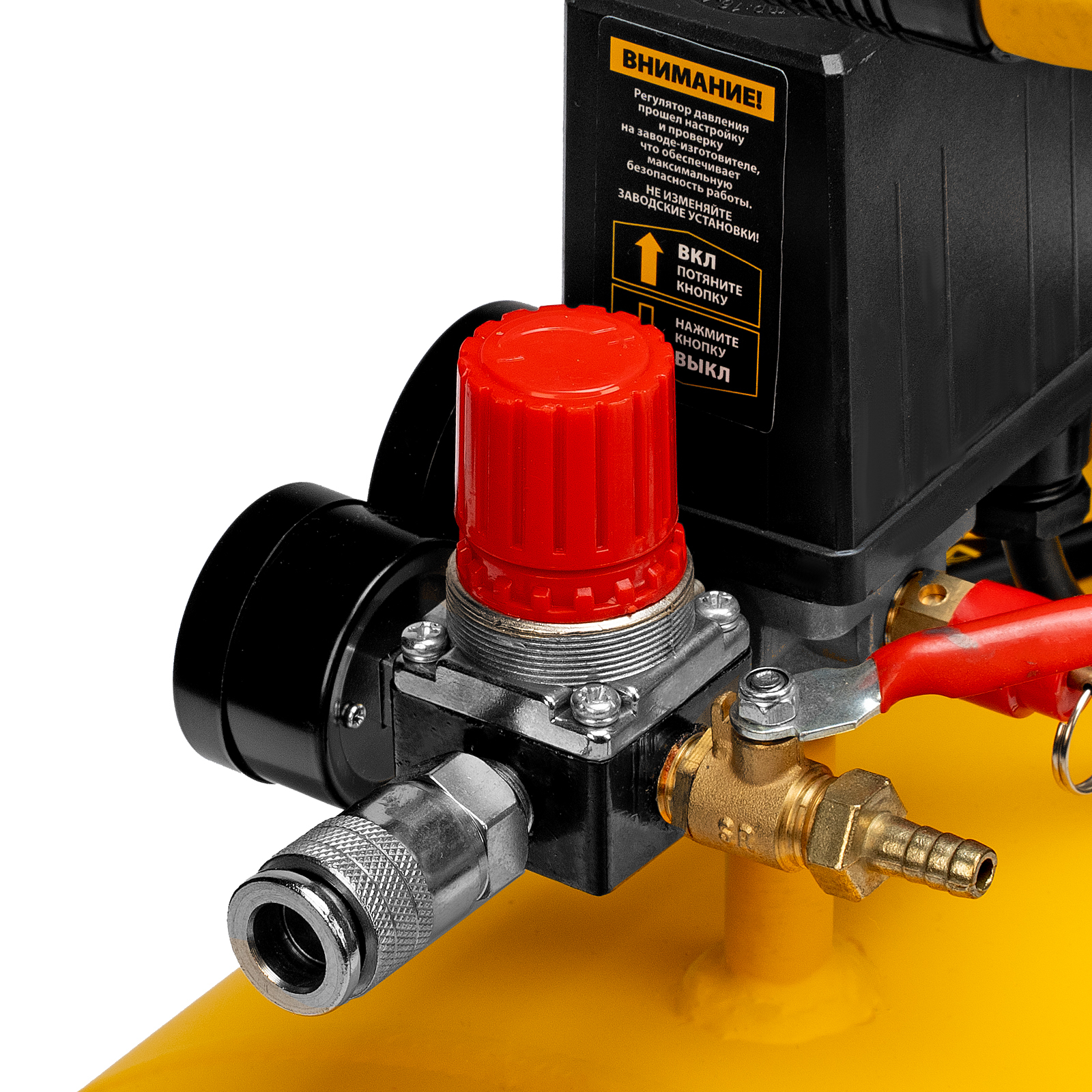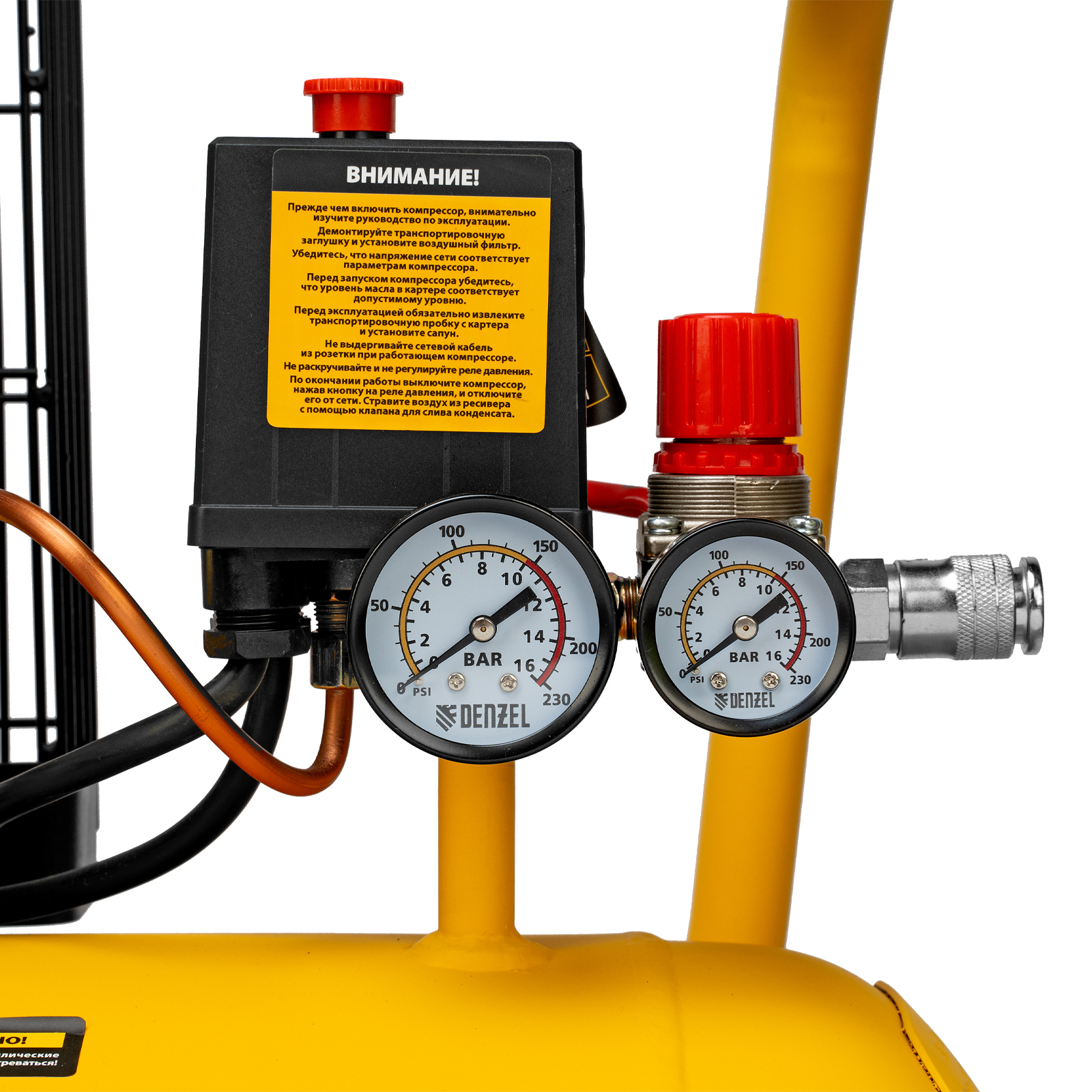 - Отслеживание рабочих параметров — 2 манометра позволяют контролировать давление в ресивере и пневмомагистрали.