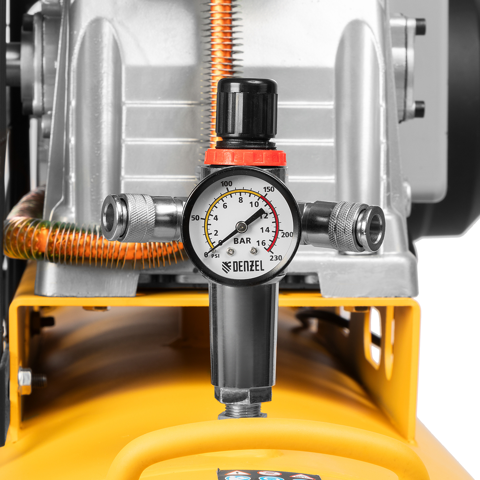 Компрессор воздушный Denzel BCI3000-T/200 58119 мощностью 3 кВт, с ременным приводом, работает со скоростью 530 л/мин, накапливая сжатый воздух в ресивере объемом 200 литров. Оптимально подходит для профессионального применения. Двигатель не боится высоких нагрузок, поэтому компрессор можно использовать на фабриках, в автосервисах, мастерских и при создании магистралей воздухоподачи. При необходимости можно напрямую подключить второй накопитель.