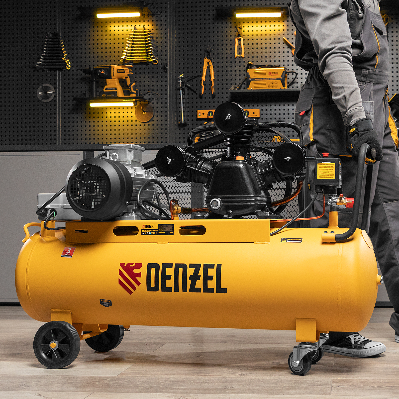 Компрессор Denzel BCW3000-T/100 58118 мощностью 3 кВт, с ременным приводом и ресивером на 100 л, производит 520 л сжатого воздуха в минуту. Отлично подходит для коммерческого использования, например, для организации магистралей воздухоподачи и длительных работ с пневмоинструментом, используется также на предприятиях при производстве мебели и т.д. Трехцилиндровая компоновка обеспечивает лучшее охлаждение и ремонтопригодность в случае необходимости.