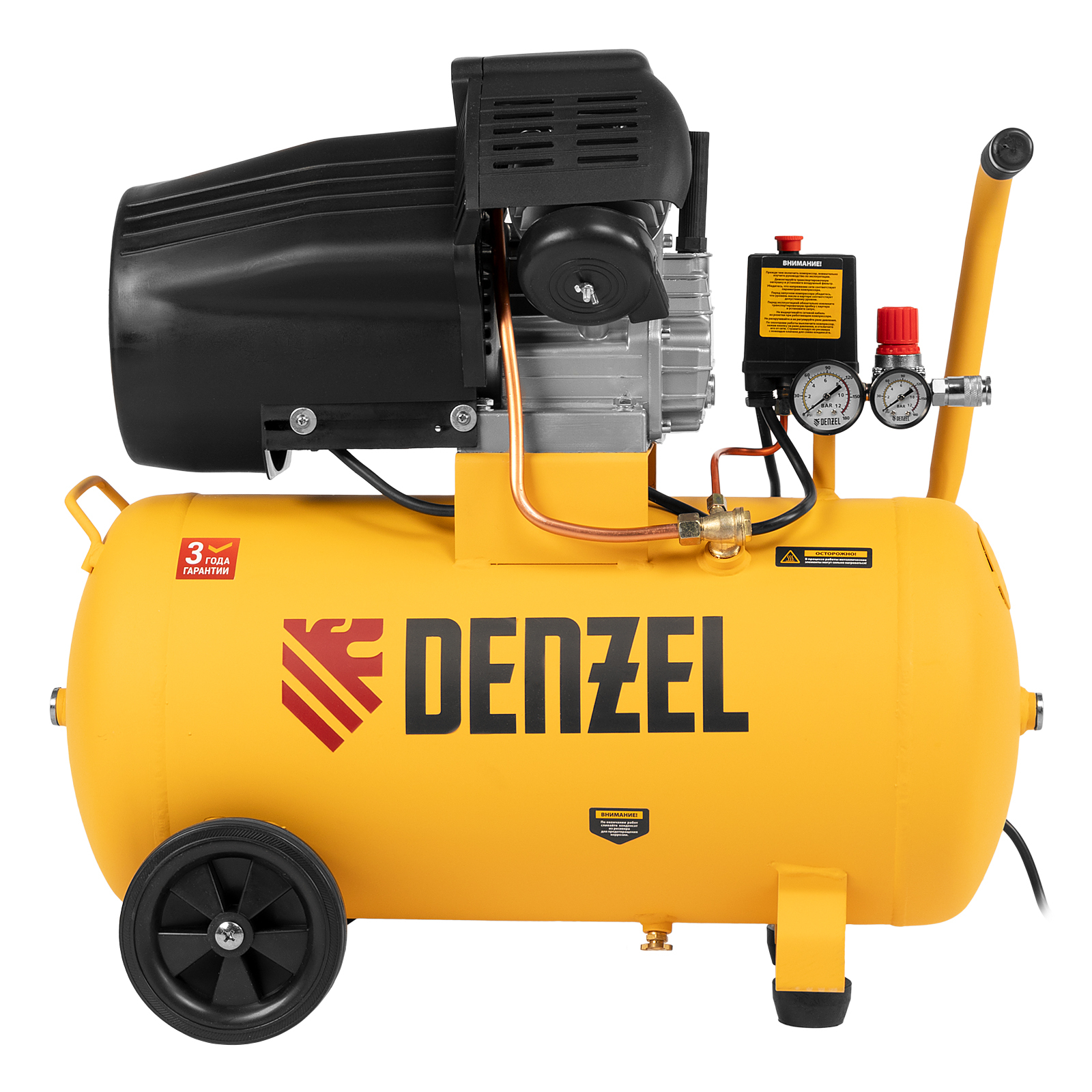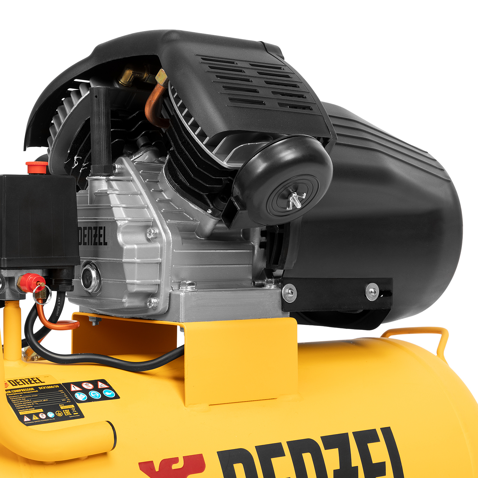 Воздушный компрессор с прямым приводом Denzel DCV1800/50 58168 мощностью 1,8 кВт и производительностью на входе 320 л/мин, с объемом ресивера 50 л, подходит для обеспечения длительной работы пневмогайковерта, пневмозубила, пневмодрели, пневмомолотка или другого пневмоинструмента. Быстроразъемные коннекторы Рапид (Евро) облегчают подключение пневмомагистралей. Эффективная система смазки снижает износ деталей и уменьшает нагрузку на двигатель, что позволяет использовать компрессор в профессиональной сфере.