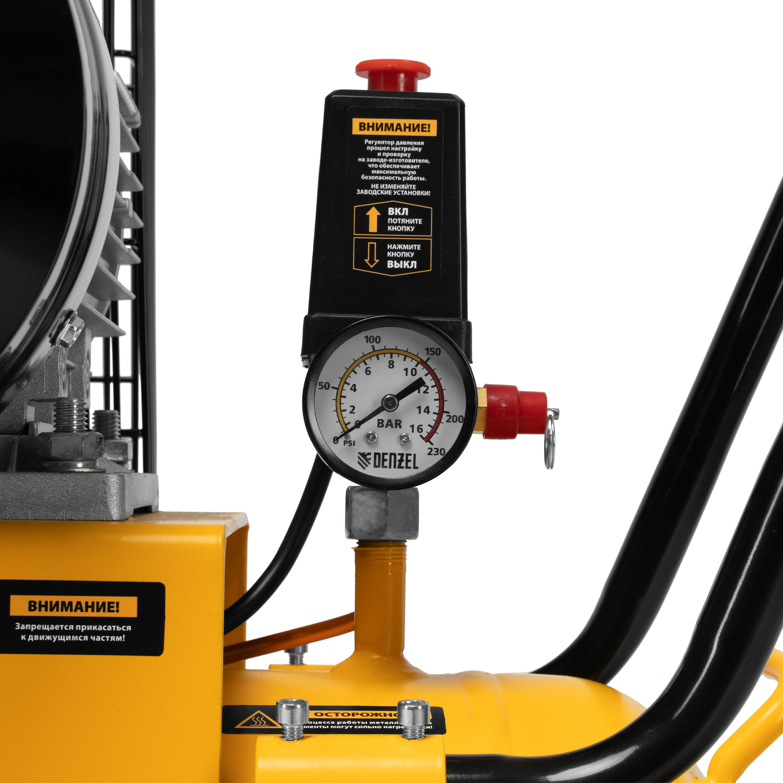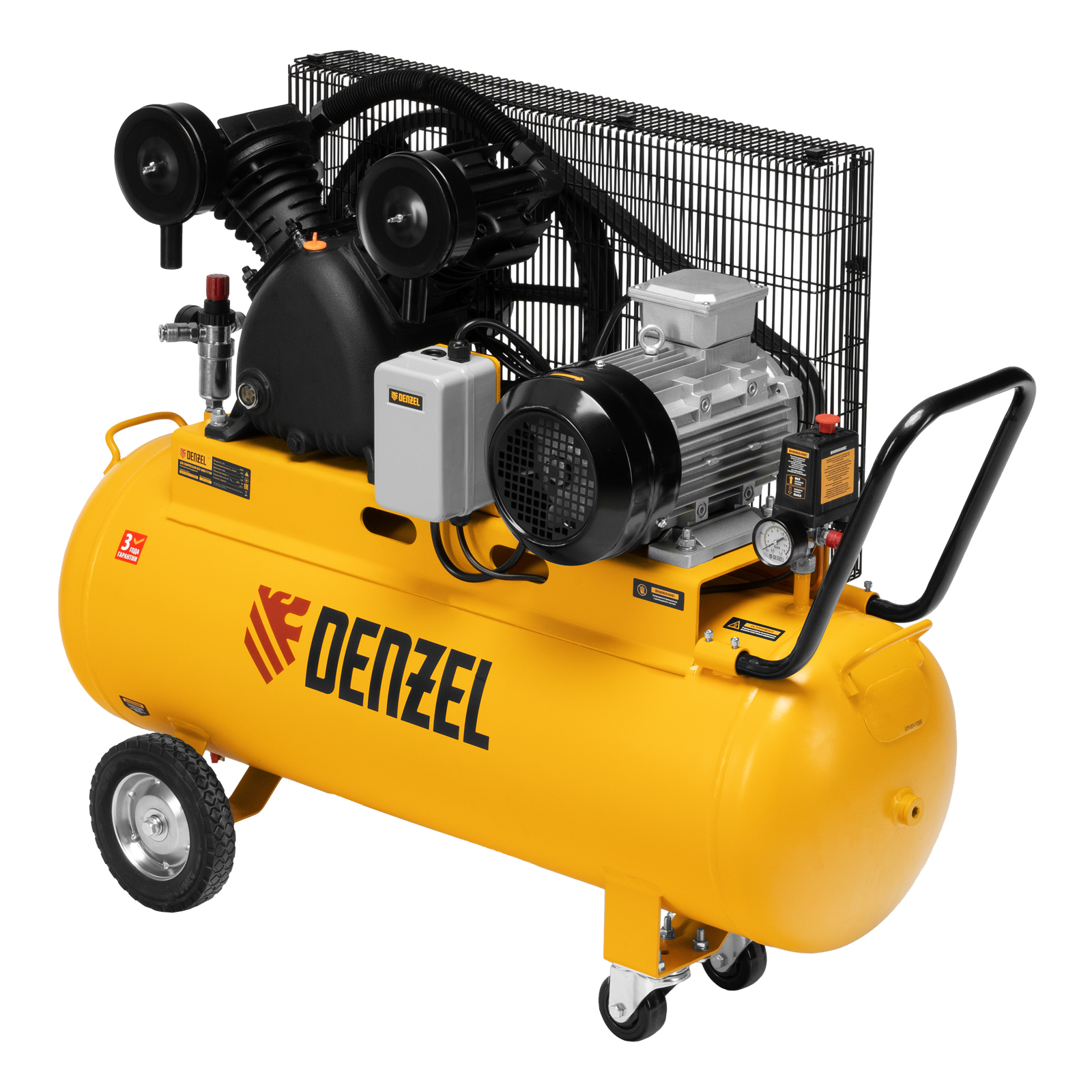 Воздушный компрессор Denzel BCV 4000-T/100 58117 с ременным приводом, мощностью 4,0 кВт и производительностью 690 л/мин, с ресивером объемом 100 л, — источник сжатого воздуха для работы с пневмогайковертом, пневмодрелью, краскопультом, углошлифовальной машиной или другим пневмоинструментом. Двигатель с медной обмоткой обеспечивает стабильную работу в течение длительного времени. Для подключения инструмента предусмотрено 2 быстросъемных коннектора Рапид (Евро) и штуцер «елочка» с краном. Специальный порт позволяет подключить напрямую дополнительный ресивер или пневмомагистраль. Компрессор отличается высокой производительностью и будет полезен на строительной площадке и станции техобслуживания.