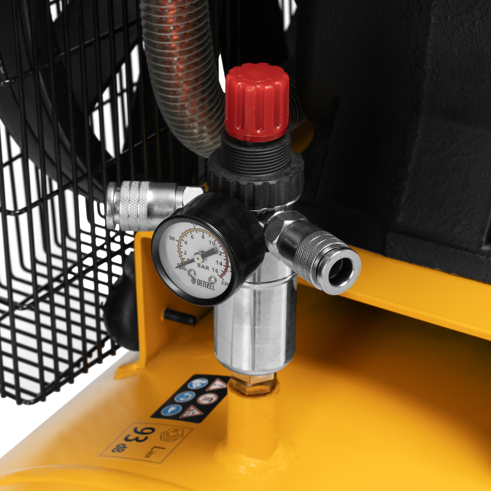 - Удобный контроль давления в ресивере и пневмомагистрали — компрессор оснащен двумя механическими манометрами.