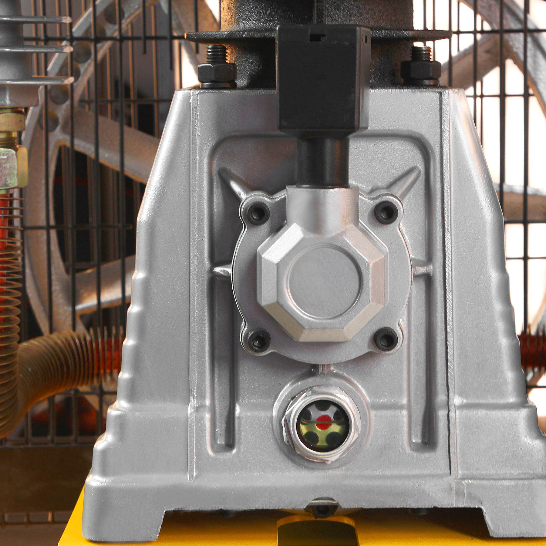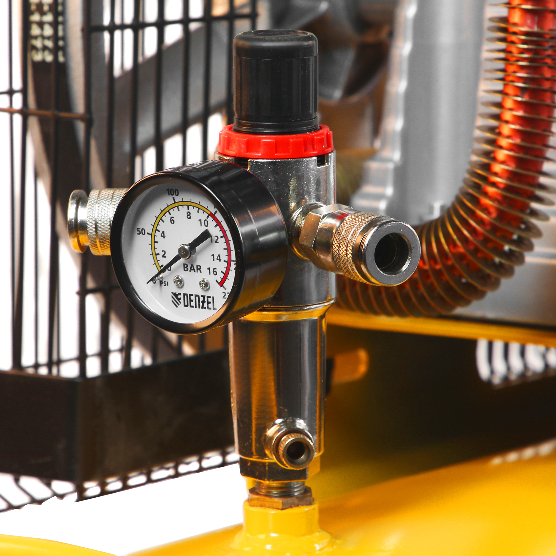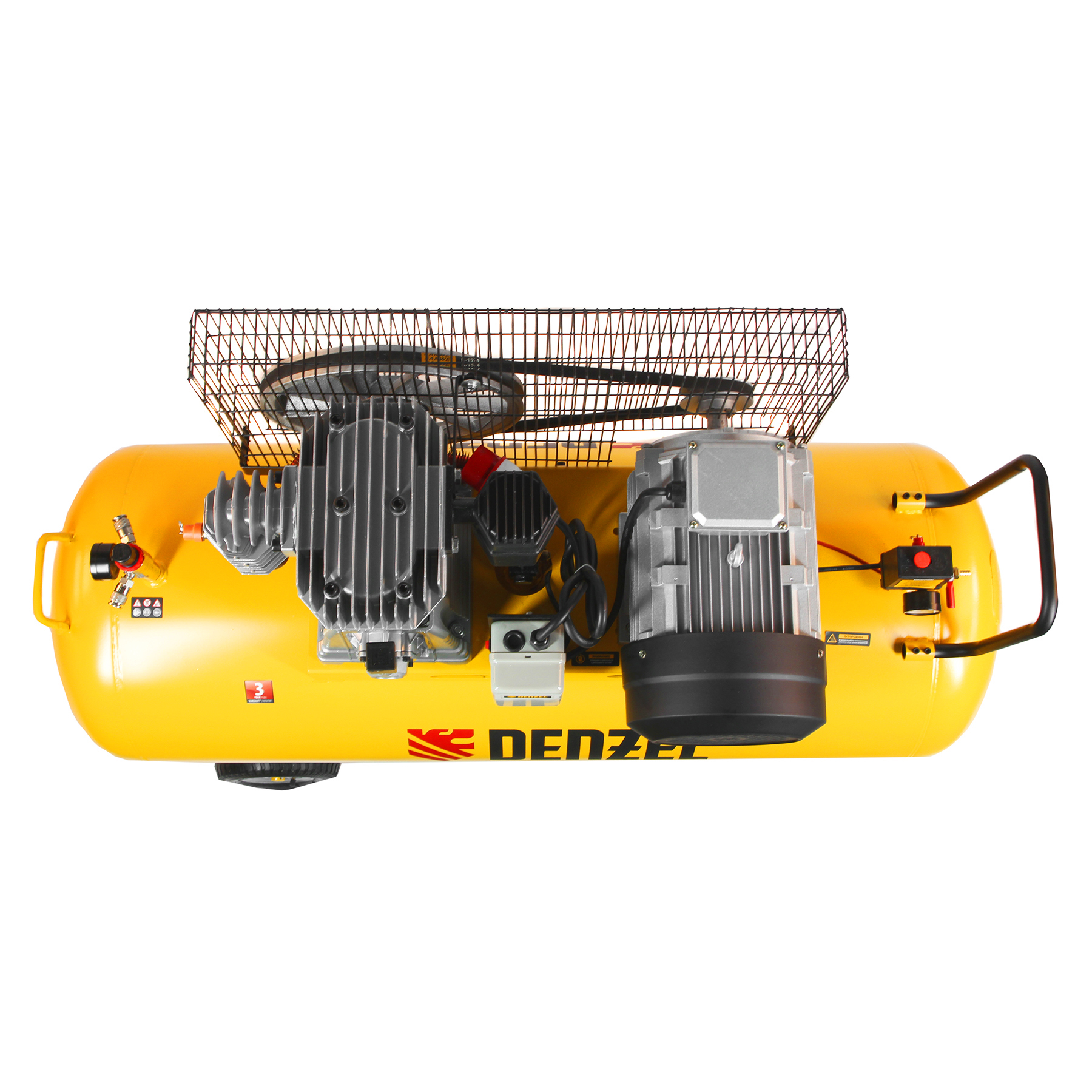 Воздушный компрессор Denzel BCI5500-T/270 58129 мощностью 5,5 кВт, с ресивером объемом 270 л, сжимает 850 литров воздуха в минуту и подает его к пневмоинструменту. К компрессору можно подключить пневмодрель, пневмогайковерт, пневмостеплер, пневмошуруповерт и другое оборудование. Благодаря ременному приводу он легко выдерживает интенсивные нагрузки, поэтому его можно использовать на строительной площадке или в автомастерской. Увеличенный ресивер обеспечивает большой запас сжатого воздуха, что позволяет уменьшить частоту включений мотора и снизить нагрузку на компрессор.