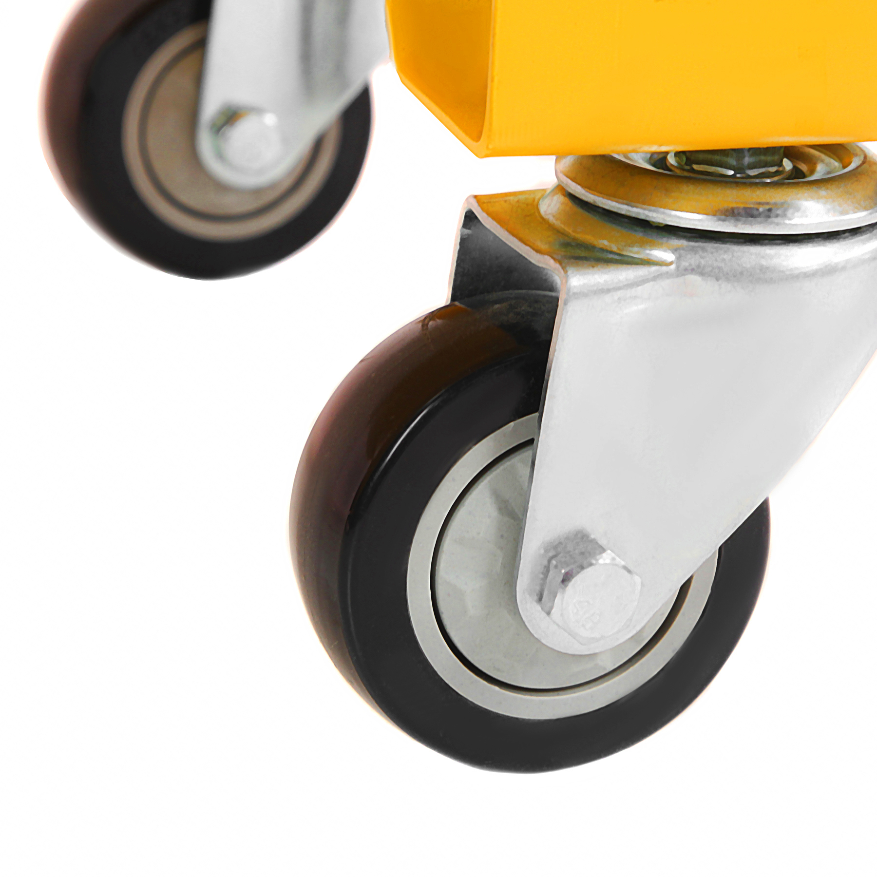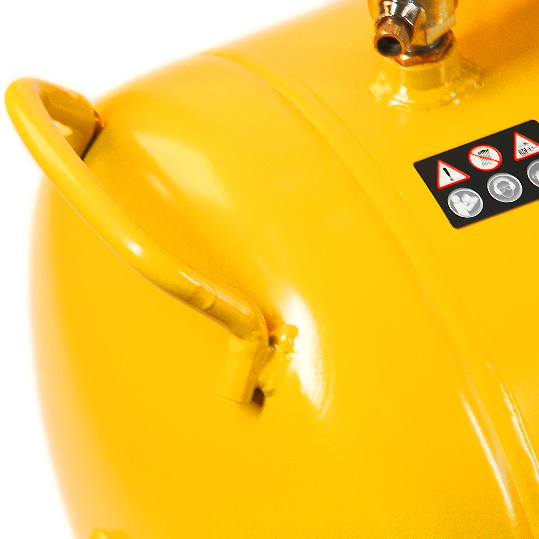 - Удобная транспортировка — П-образная ручка и 4 колеса, в том числе 2 поворотных, облегчают перемещение компрессора по рабочей площадке.