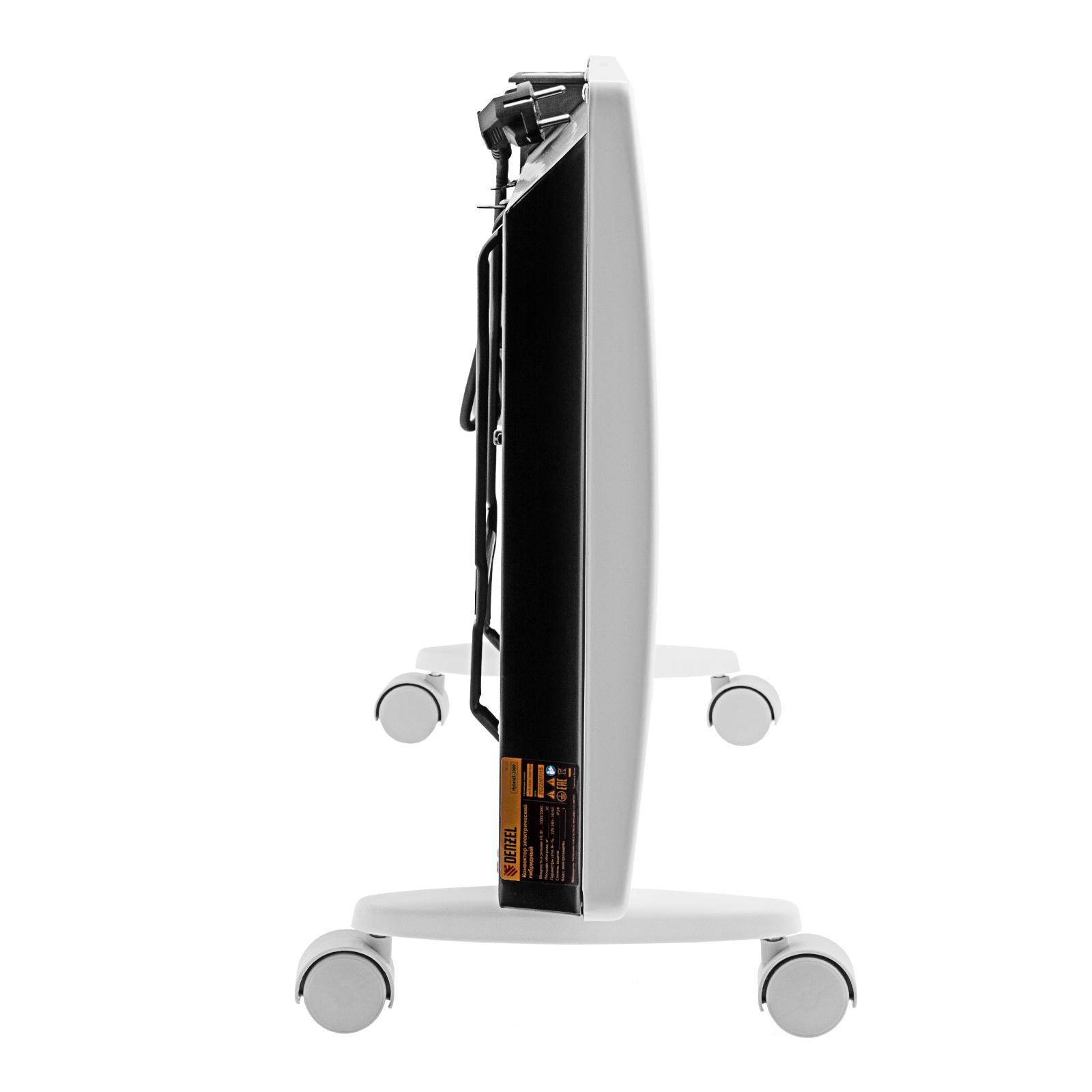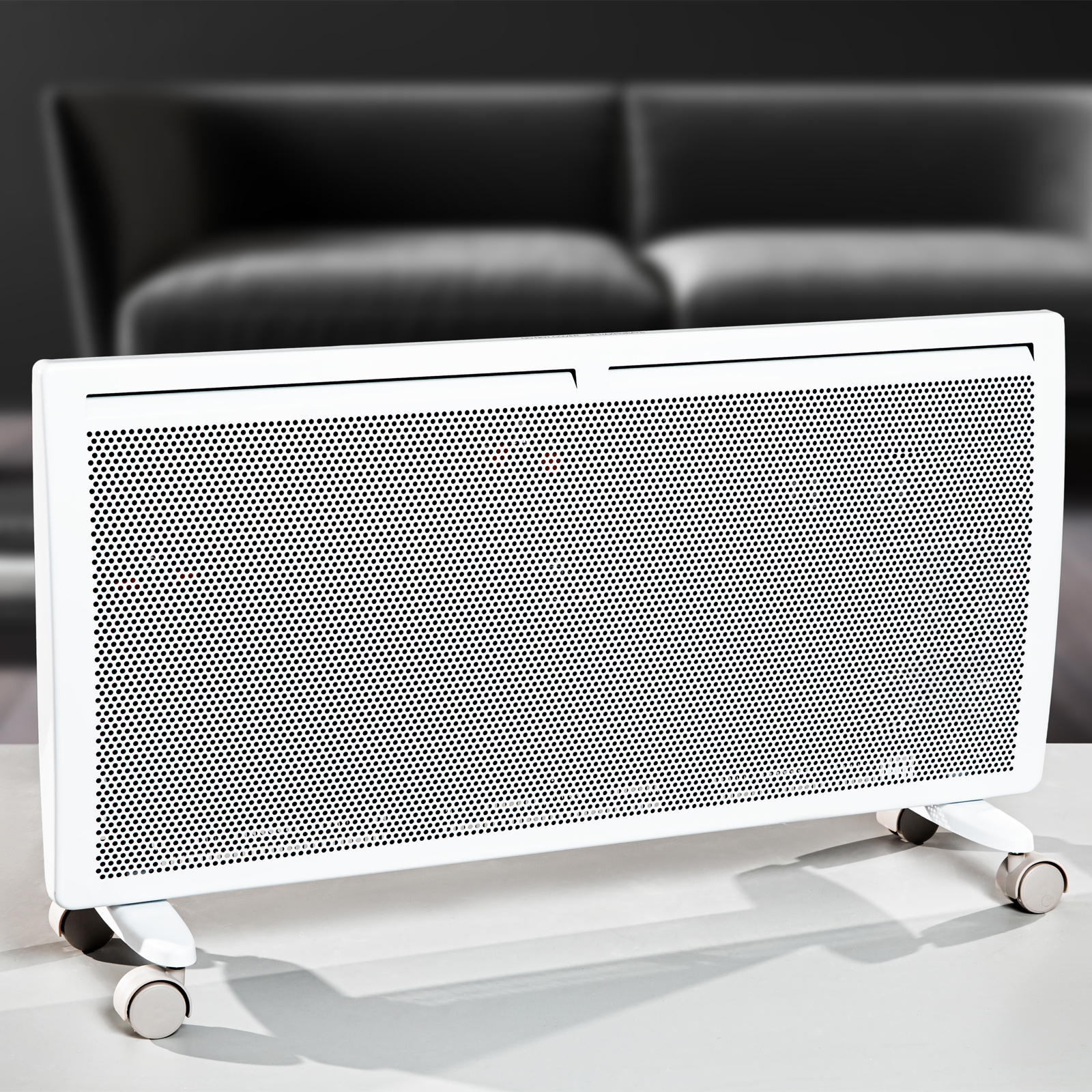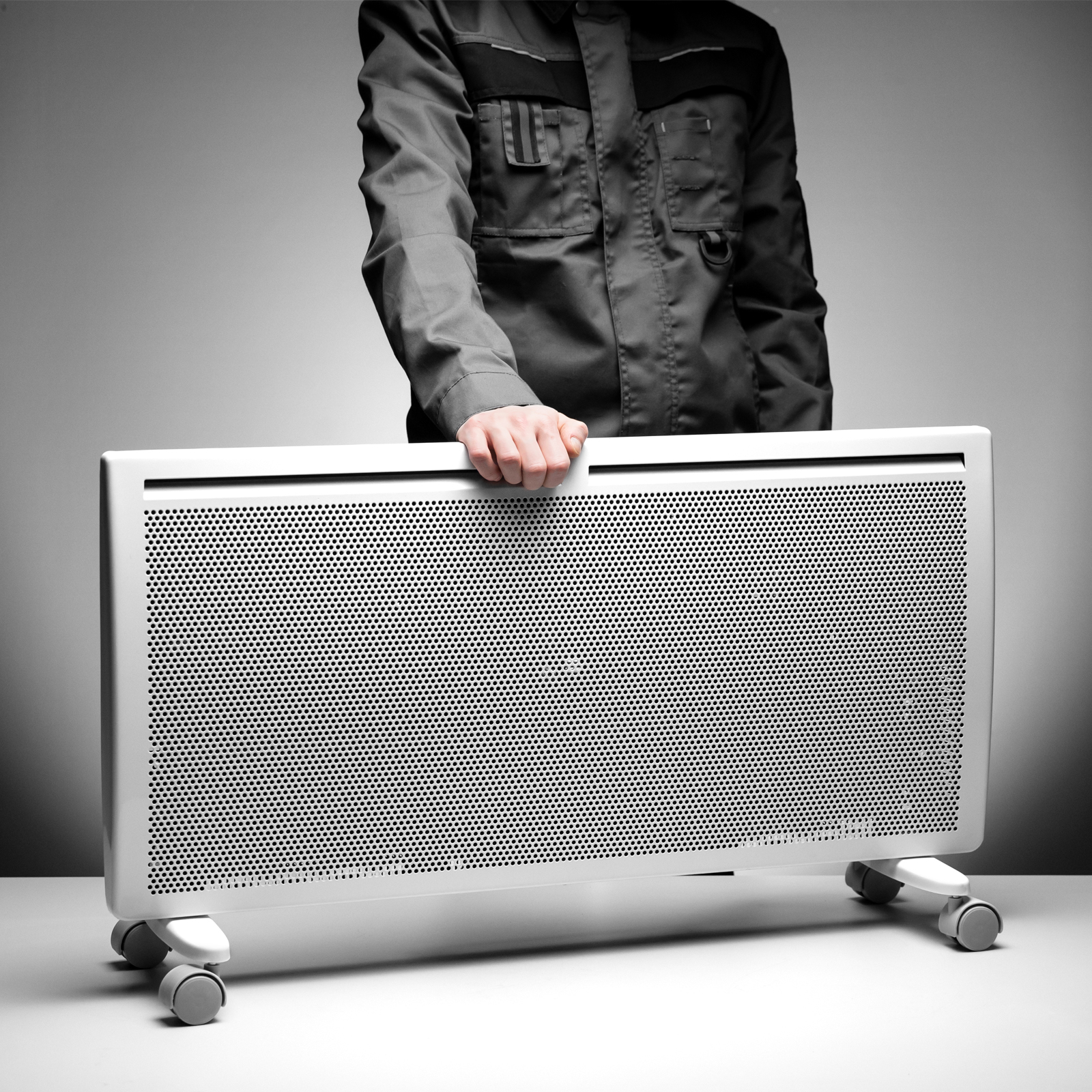 - Высокая энергоэффективность — гибридный нагревательный элемент излучает инфракрасное тепло и одновременно обеспечивает конвекцию воздуха, что позволяет прогревать помещение заметно быстрее при тех же затратах энергии.