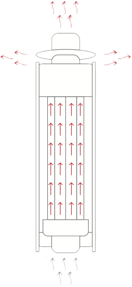 Дымоход "Конвектор" от Vöhringer устанавливается на стартовый участок печи и предназначен для повышения КПД печи за счет конвекции воздуха в помещении. Теплопередача осуществляется через ребра конвекции за счет циркуляции воздуха. Встроенные каналы распределяют потоки воздуха, забирают холодный воздух в нижней части дымохода, нагревают его и передают нагретый воздух в помещение.
