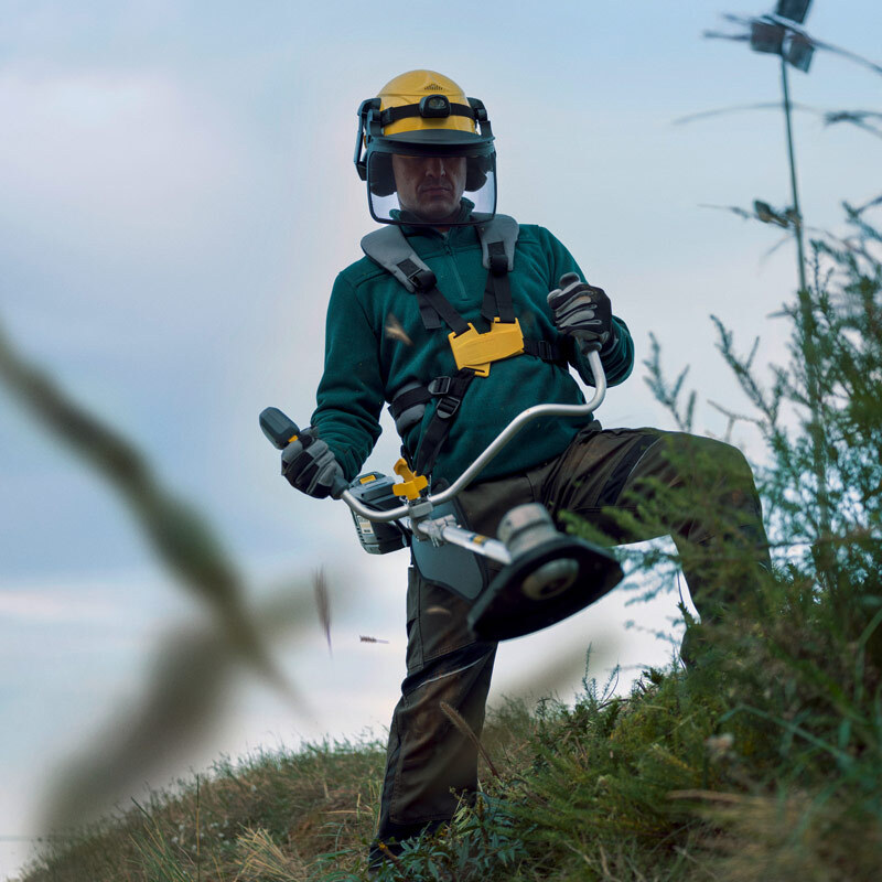 Сбалансированная конструкция и регулируемая эргономичная двуручная рукоятка позволяют очень легко управлять инструментом и без переутомления выполнять большие объемы работ. Низкий уровень шума обеспечивает возможность применения косы даже в местах, требующих соблюдения тишины, а оснащение подходящими принадлежностями позволяет использовать ее и для ухода за газонами.