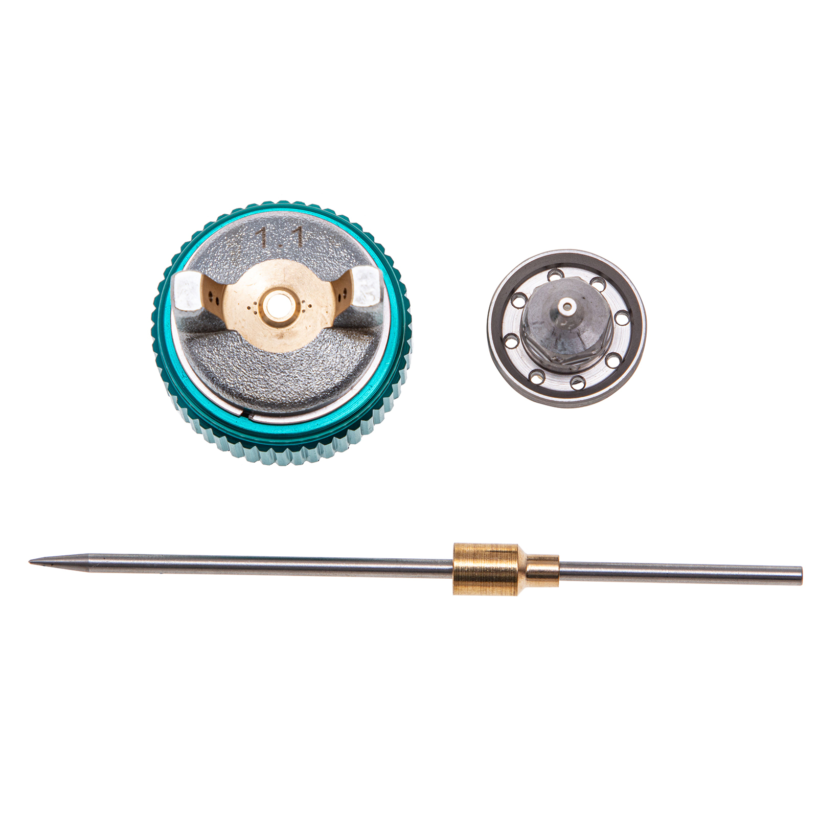 - Необходимые аксессуары в комплекте — краскопульт поставляется с дюзовым набором диаметром 1,3 мм, ершиком для очистки и универсальным ключом.