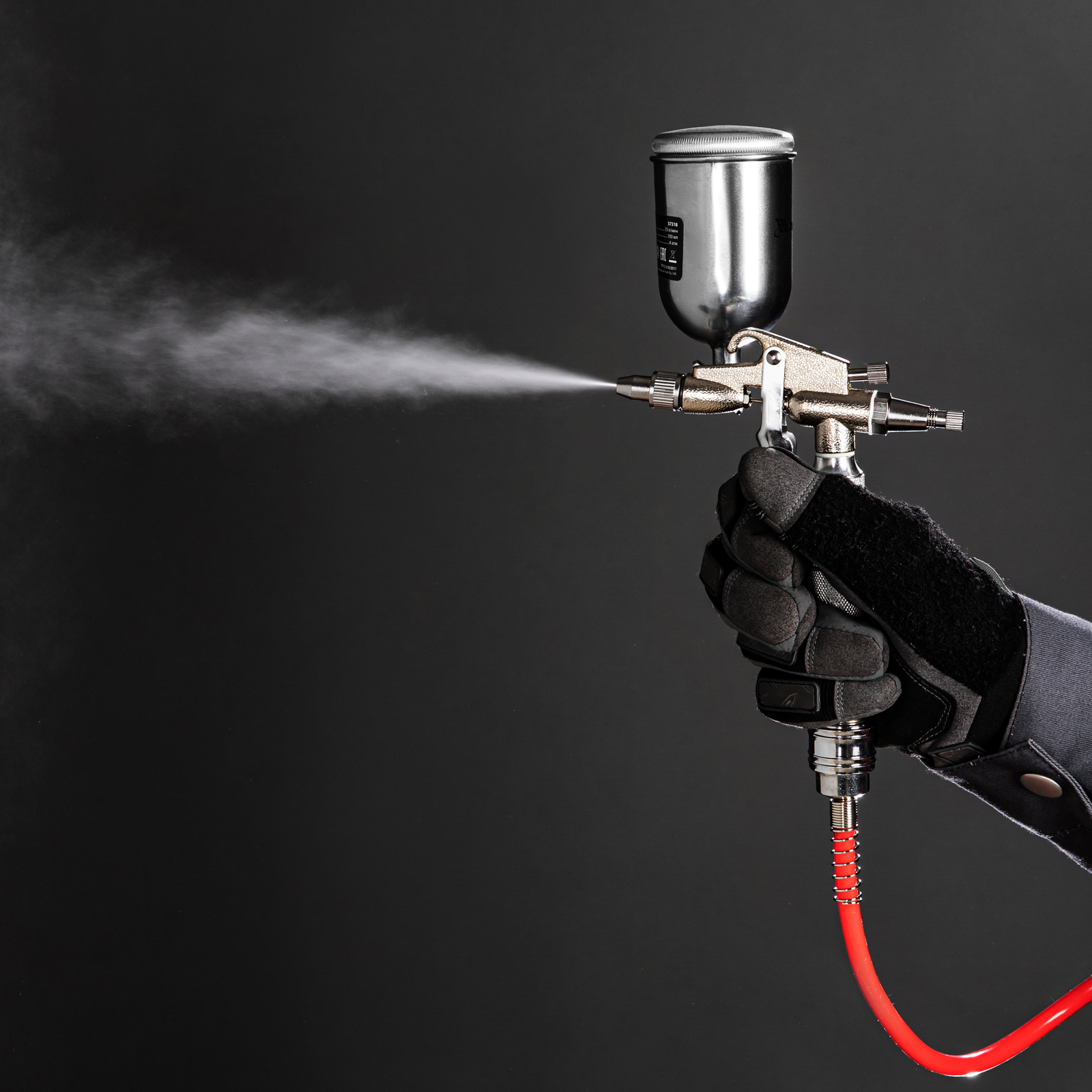 - Малый вес 0,4 кг — даже продолжительная работа краскораспылителем не вызывает дискомфорт.