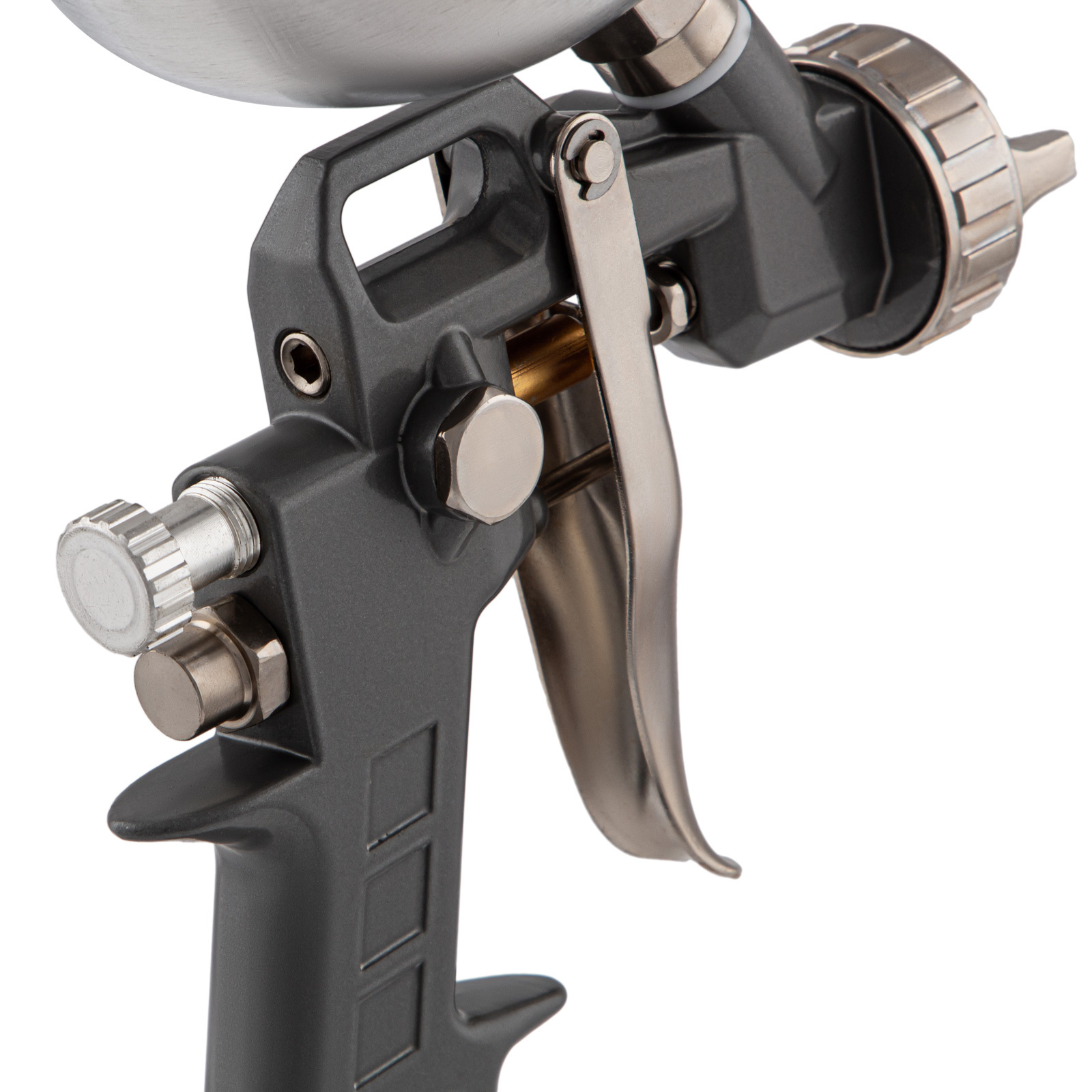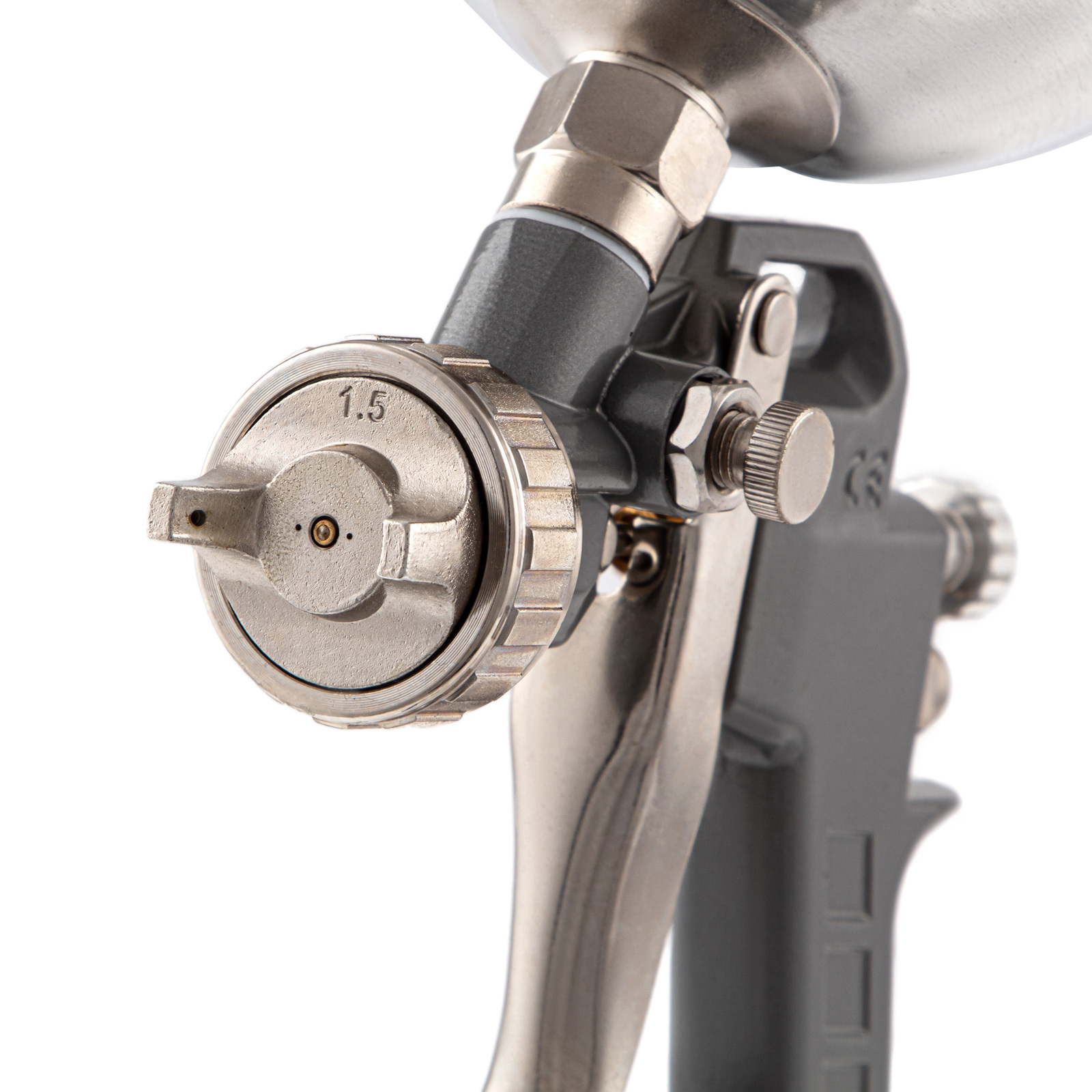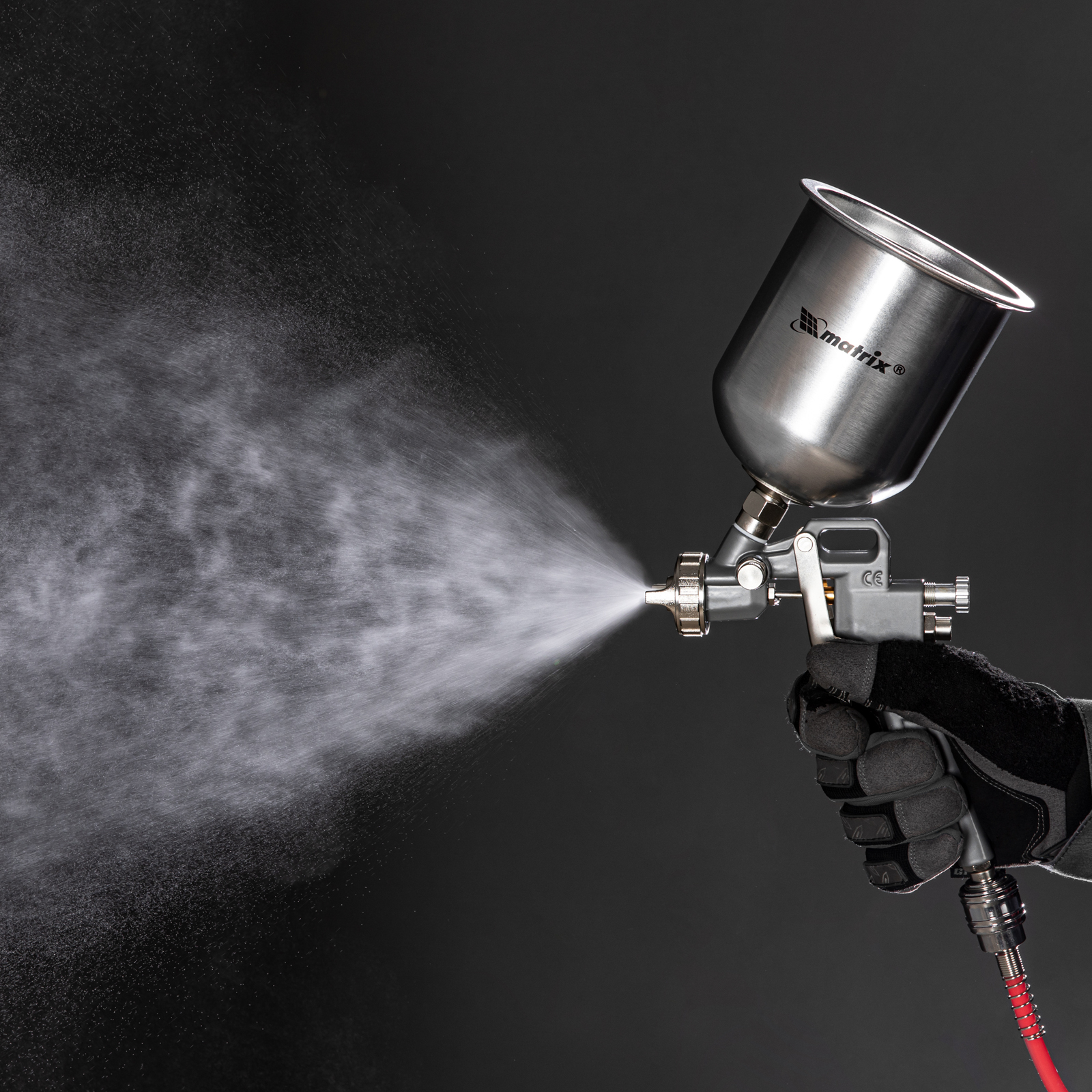 Пневматический краскораспылитель Matrix 57315 с верхним бачком объемом 1,0 л и соплами диаметром 1,2, 1,5 и 1,8 мм используется для окрашивания поверхностей и нанесения защитных составов. Он может работать с различными составами, такими как шпаклевка, лак и краска, т. к. в комплекте идет набор сменных сопел различного диаметра. Краскораспылитель пригодится в автосервисе или на стройке, а также на мебельном производстве для обработки дерева лаком.