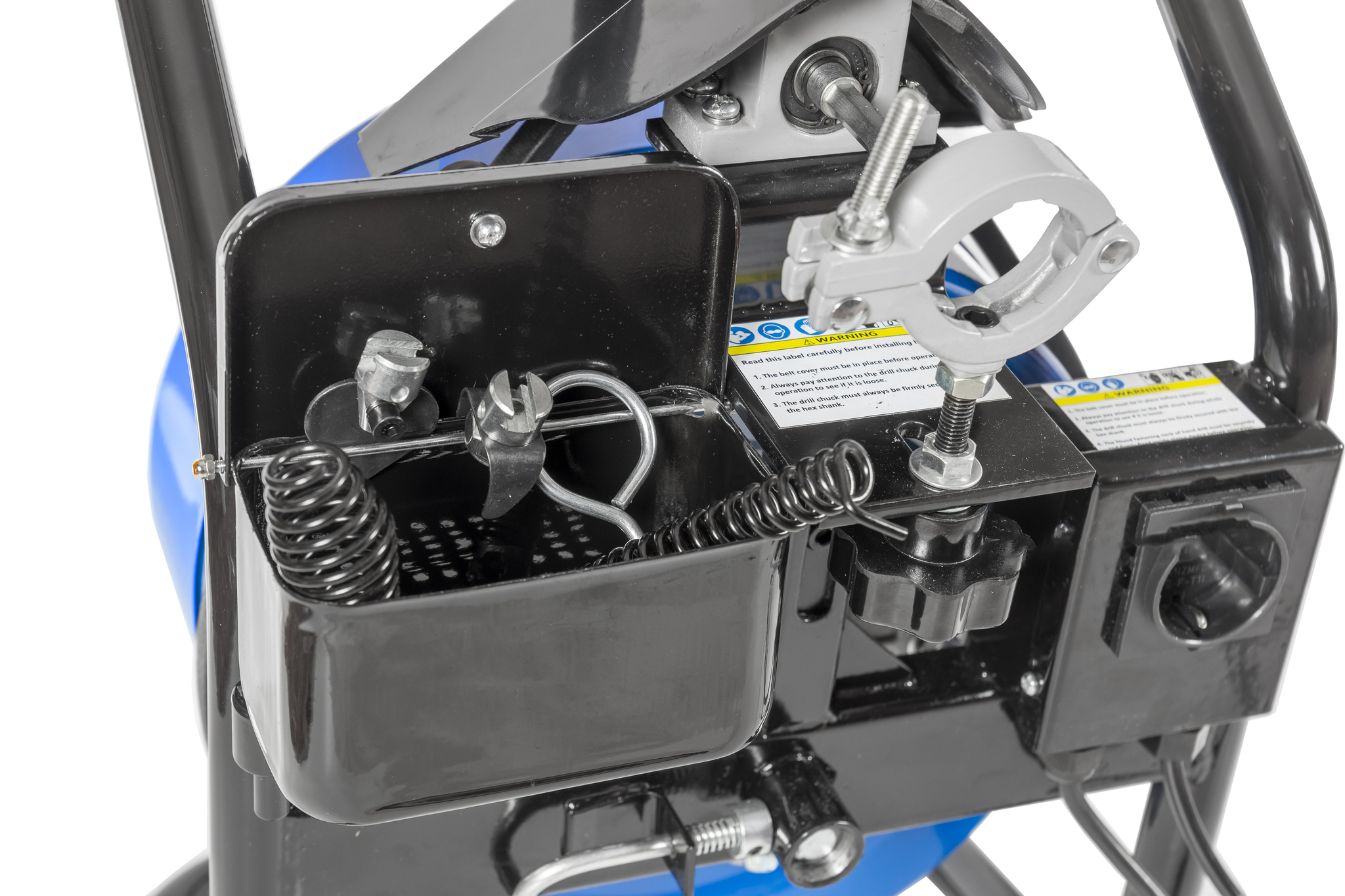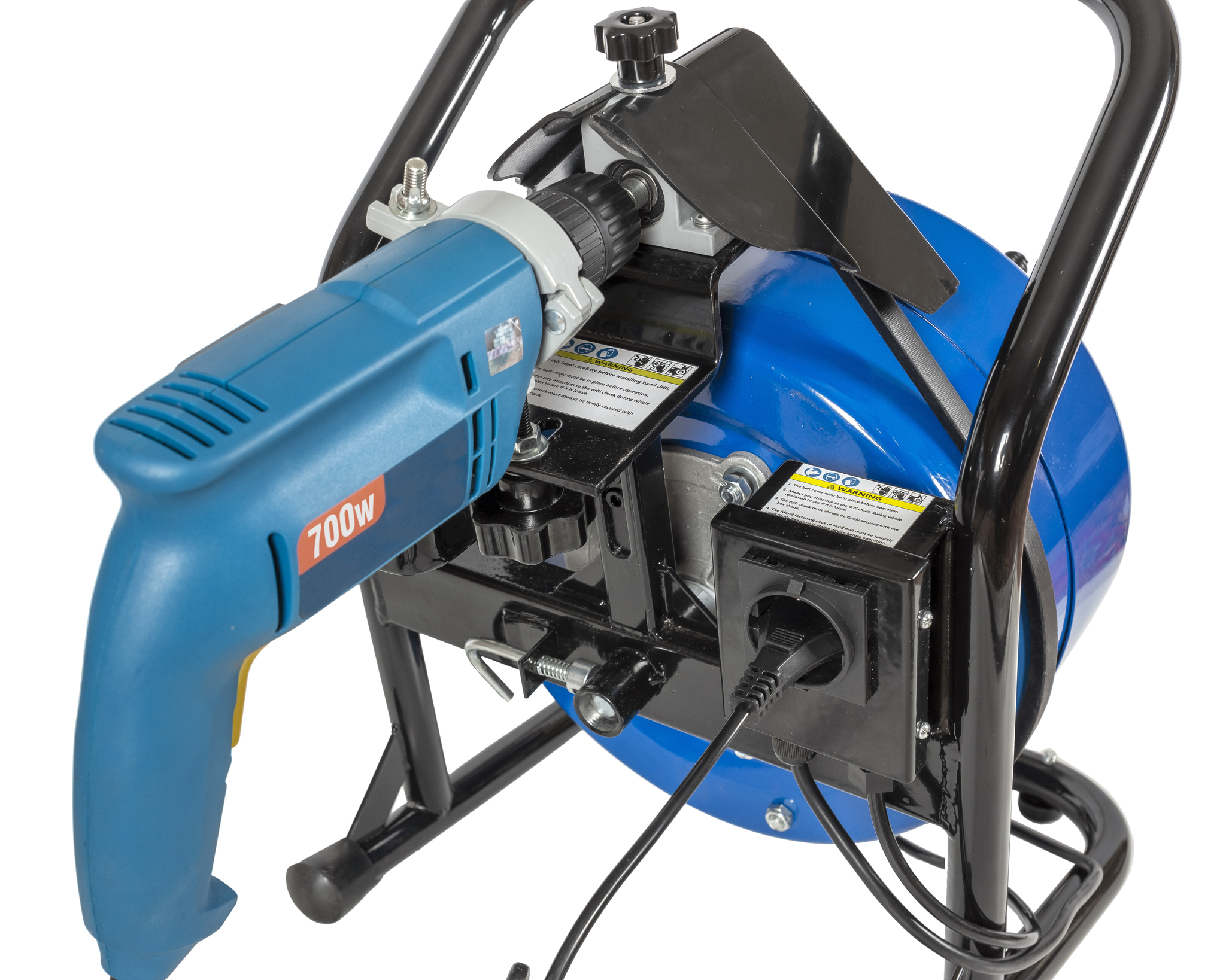 Прочистная машина Крокочист для удаления засоров в канализации это экономичный вариант для тех, кто не экономит на качестве и безопасности. Вы приобретаете оборудование, где предусмотренна защита опреатора от поражения электрическим током. На машине установлена пневмопедаль и устройство защитного отключения на кабеле. В качестве привода может быть использована обычная дрель, мощностью от 700 Ватт или шуруповерт. Просто присоедините ее к машине и включите в защищенную розетку на самой электрической машине. Эта модель подойдет для использования в частном секторе и на предприятиях, где засоры возникают реже 1 раза в день. Максимальный диаметр трубы 110мм. Максимальная длина спирали 25 метров. В комплекте 4 сменные насадки и ключ для Т-образного замка. Дрель в данном артикуле идет в комплекте.