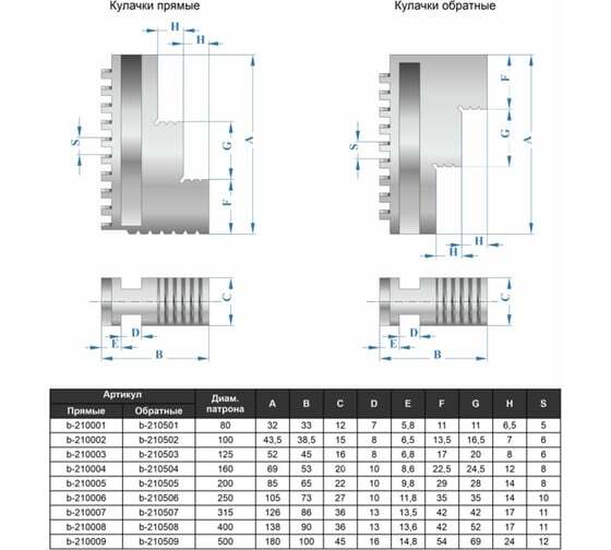 Кулачки прямые GRIFF b210003 предназначены для токарных патронов диаметром 125 мм. Применяются для зажима заготовок.