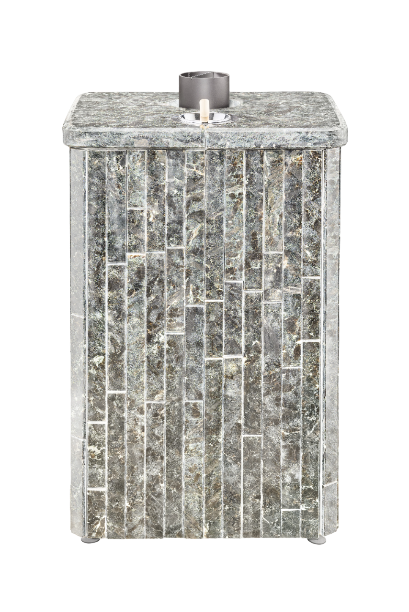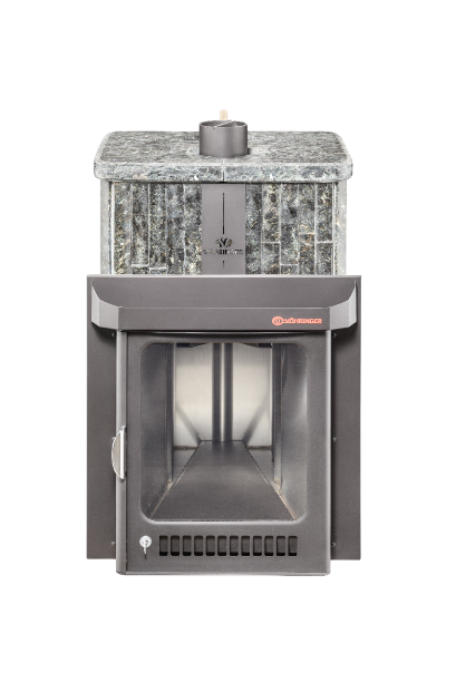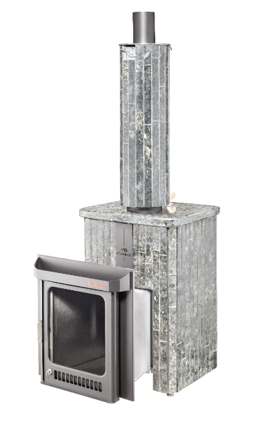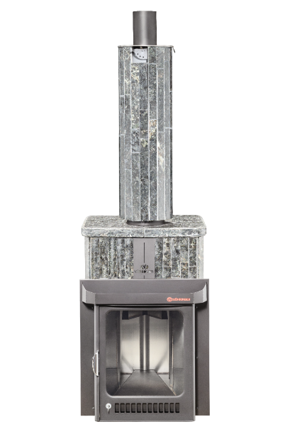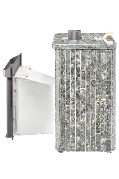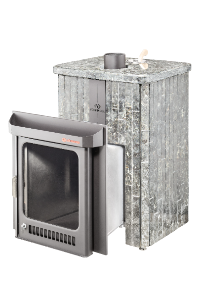 Если вы любите минималистичный дизайн и строгие линии - присмотритесь к дровяной печи “Квадра ПФ”. Данная модель предназначена для парных объемом до 25 м3. Она создает идеальные условия для парения в режиме русской бани благодаря продуманной конструкции и большой закрытой каменке (до 150 кг камней). Топка печи выполнена из жаростойкой нержавеющей стали AISI439. Закладка дров производится из смежного помещения. Дверца снабжена большим стеклом, что создает эффект камина. В “Квадру ПФ” можно установить пароиспаритель Ферингера (ПИФ) и 3 парогенерирующие кассеты. Доступна к заказу в облицовке по запатентованной технологии “Ламель” в 8 видах натурального камня и их комбинациях.