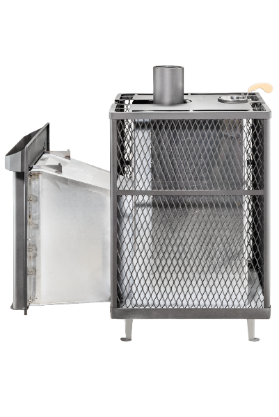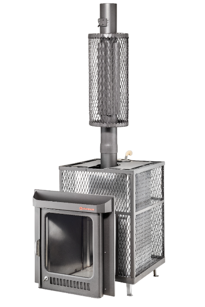 Она создает идеальные условия для парения в режиме русской бани благодаря продуманной конструкции и большой закрытой каменке (до 120 кг камней). При этом внешняя каменка в сетке выполняет декоративную роль.