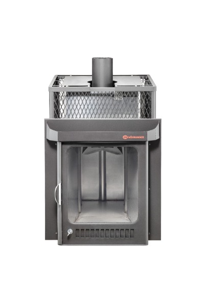 Закладка дров производится из смежного помещения. Дверца снабжена большим стеклом, что создает эффект камина. В “Квадру ПФ” в сетке можно установить пароиспаритель Ферингера (ПИФ) и 3 парогенерирующие кассеты.