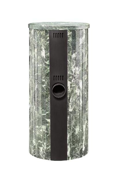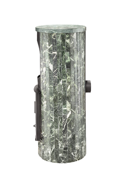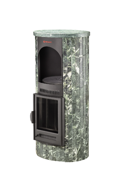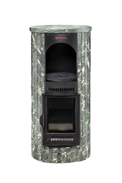 Для облицовки топки заказчик может выбрать натуральный змеевик, жадеит, "окаменевшее дерево" и мрамор. Негорючий облицовочный материал повышает безопасность оборудования, камень аккумулирует тепло и продолжает отдавать его воздуху, когда огонь в топке погас. Еще одно достоинство облицовки – уникальный узор. Рисунок на камне никогда не повторяется дважды.