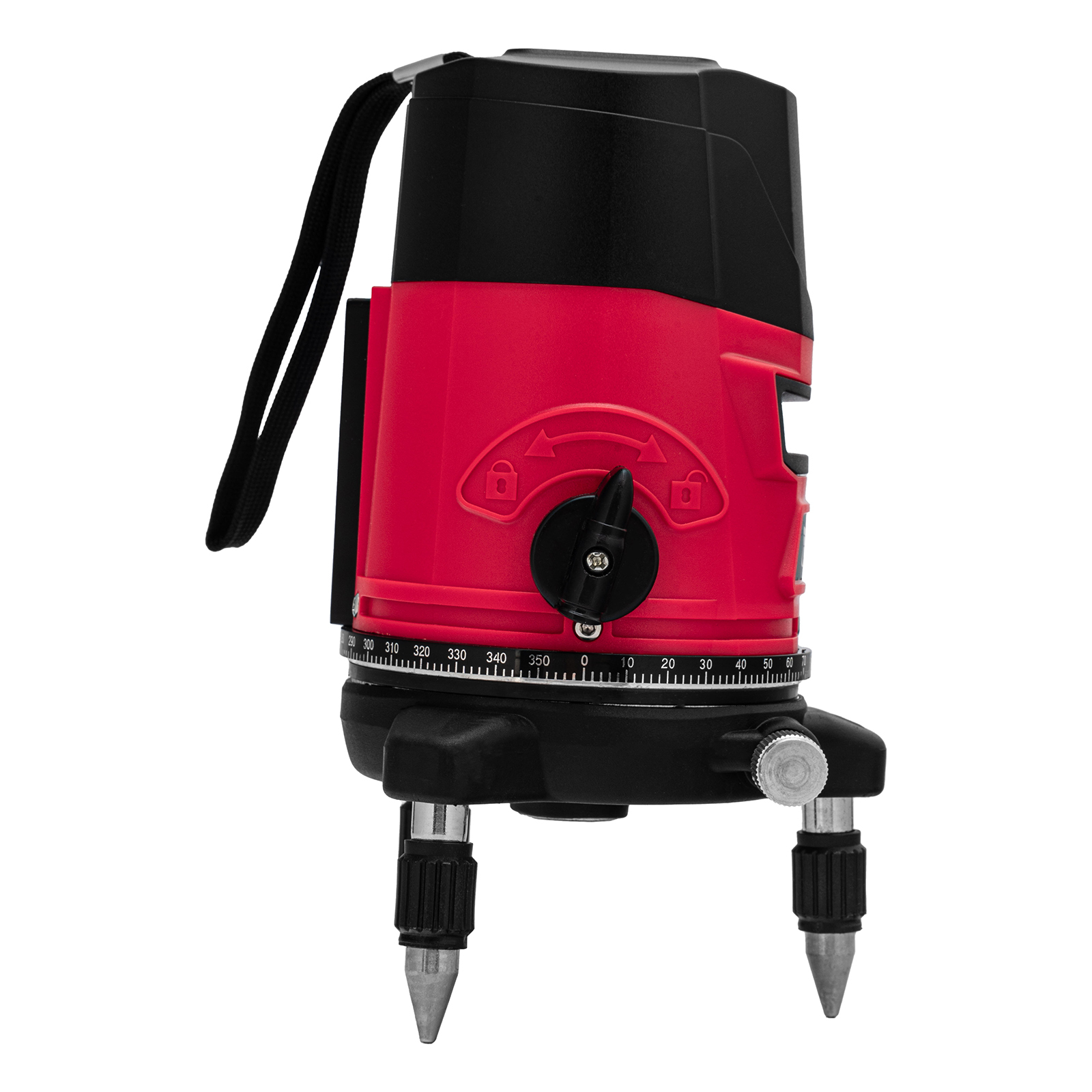 - Поворотное основание — можно плавно и точно наводить вертикальные лучи на нужный участок поверхности.