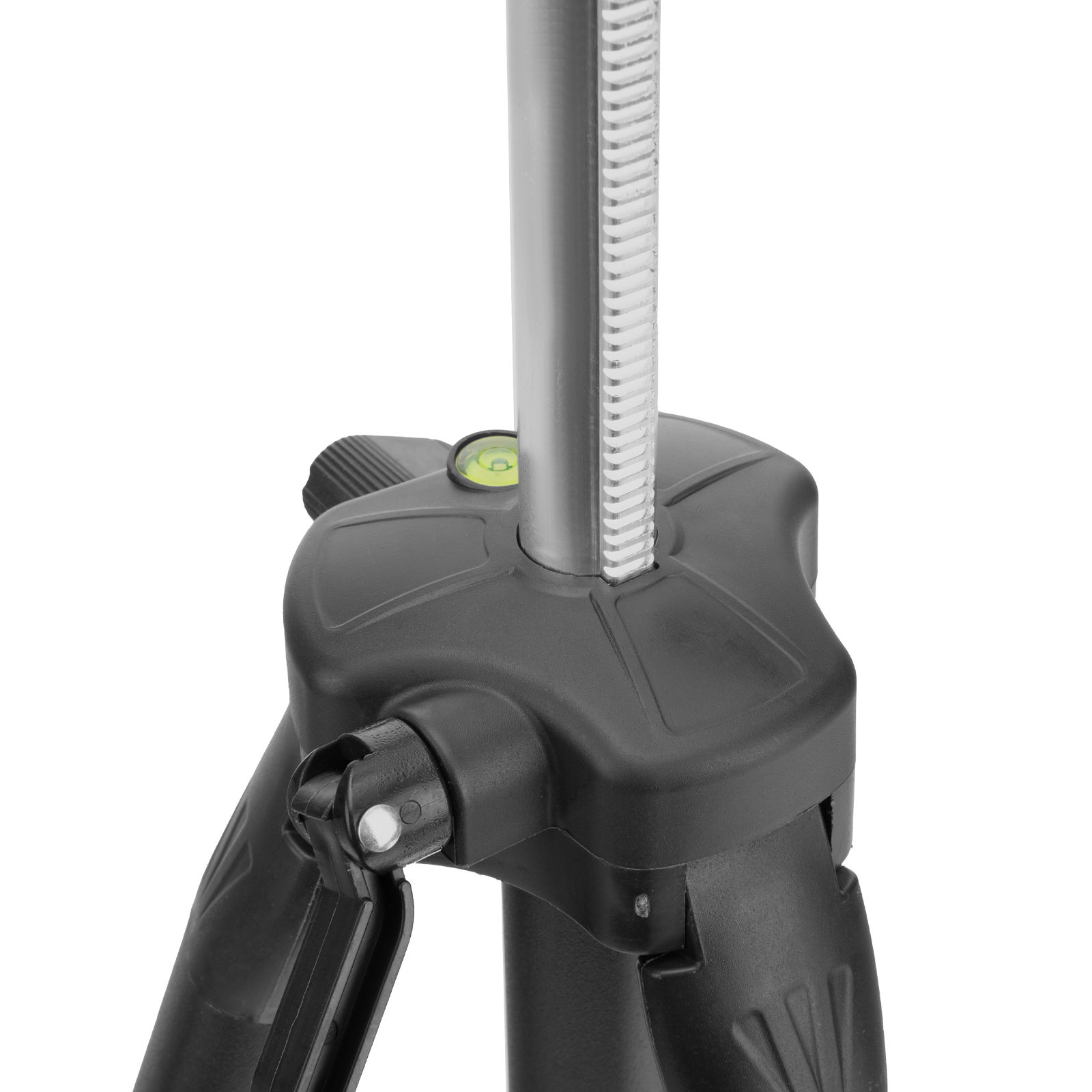 - Удобная регулировка по высоте — при помощи подъемной платформы можно изменить положение уровня по вертикали, штатив с регулируемыми ножками, металлическим подъемным механизмом и винтом точной настройки позволяет установить прибор на высоте от 440 до 1200 мм.