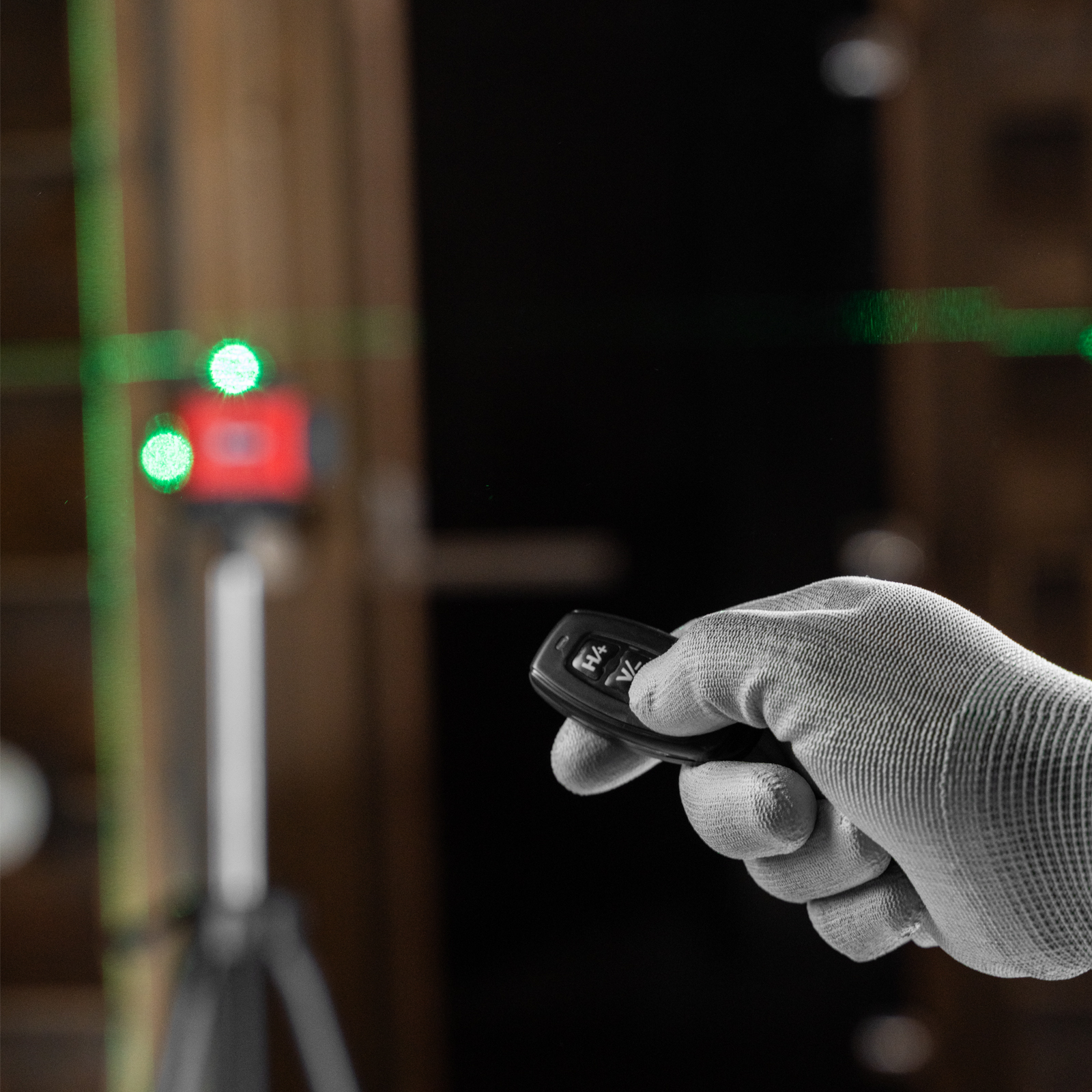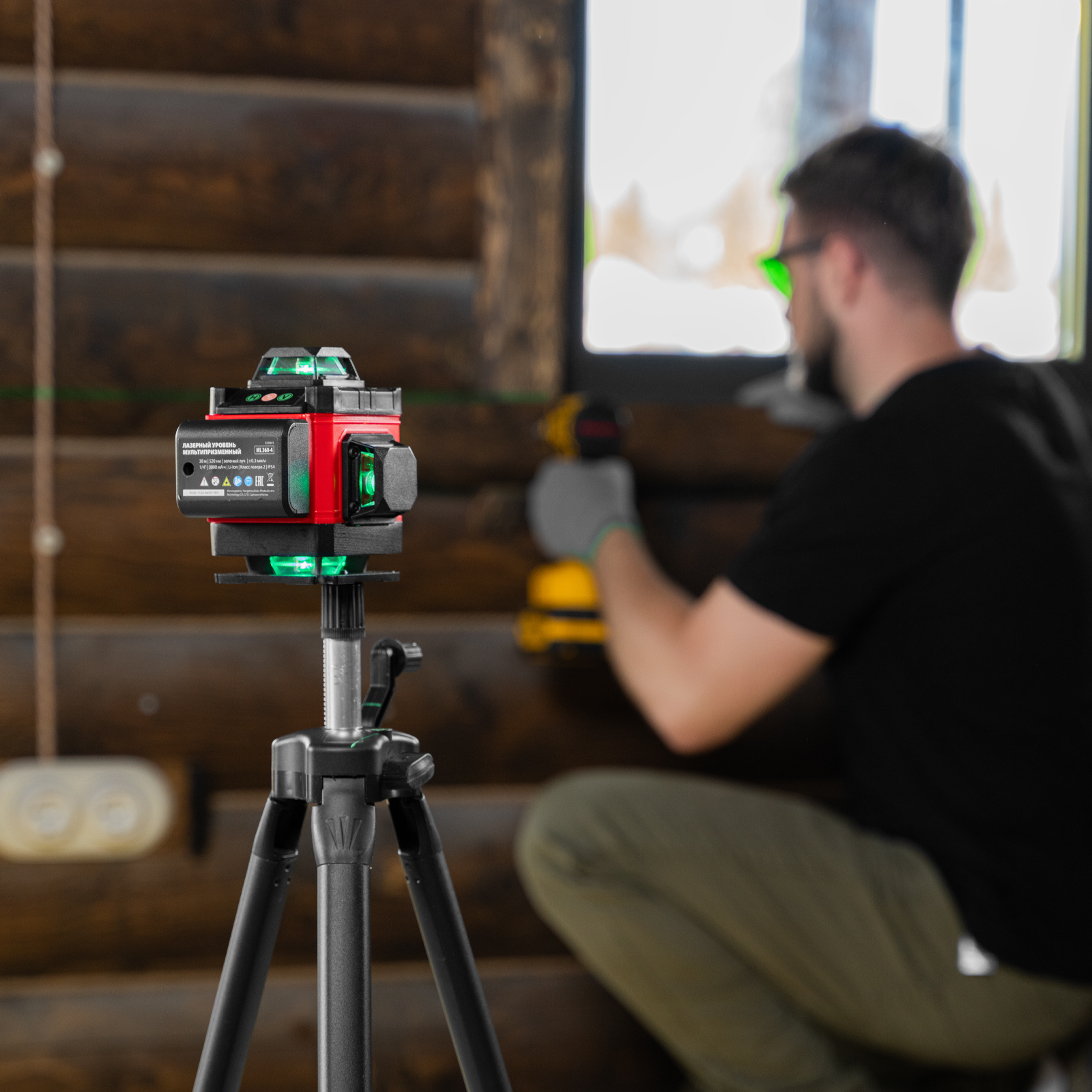 - Самовыравнивание — уровень автоматически компенсирует неровности в пределах 4°, при большем отклонении лазерные лучи будут мигать и раздастся звуковой сигнал.
