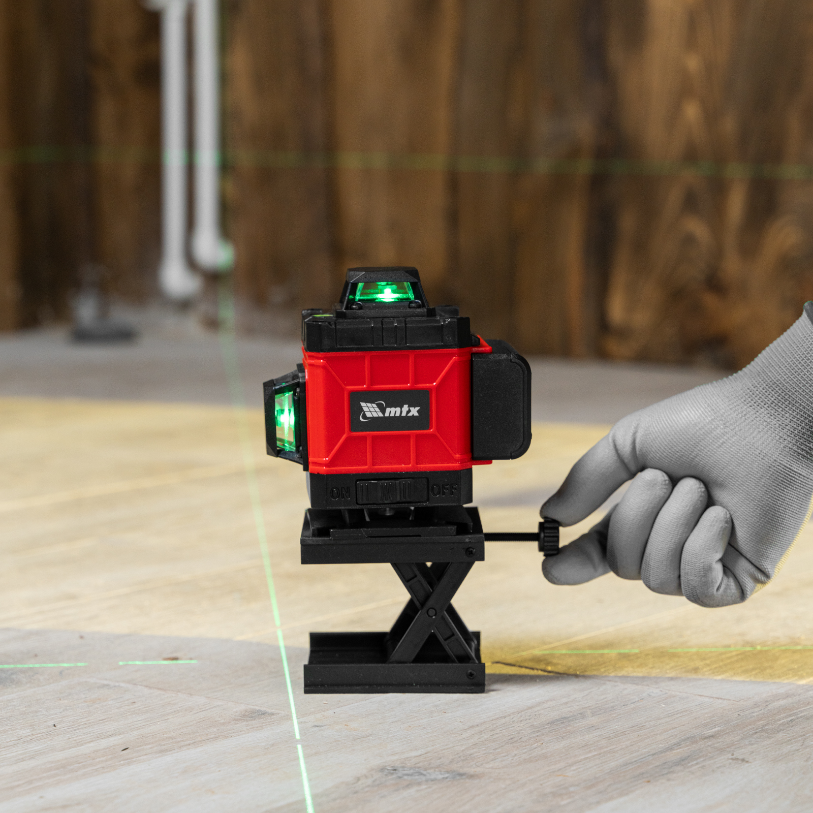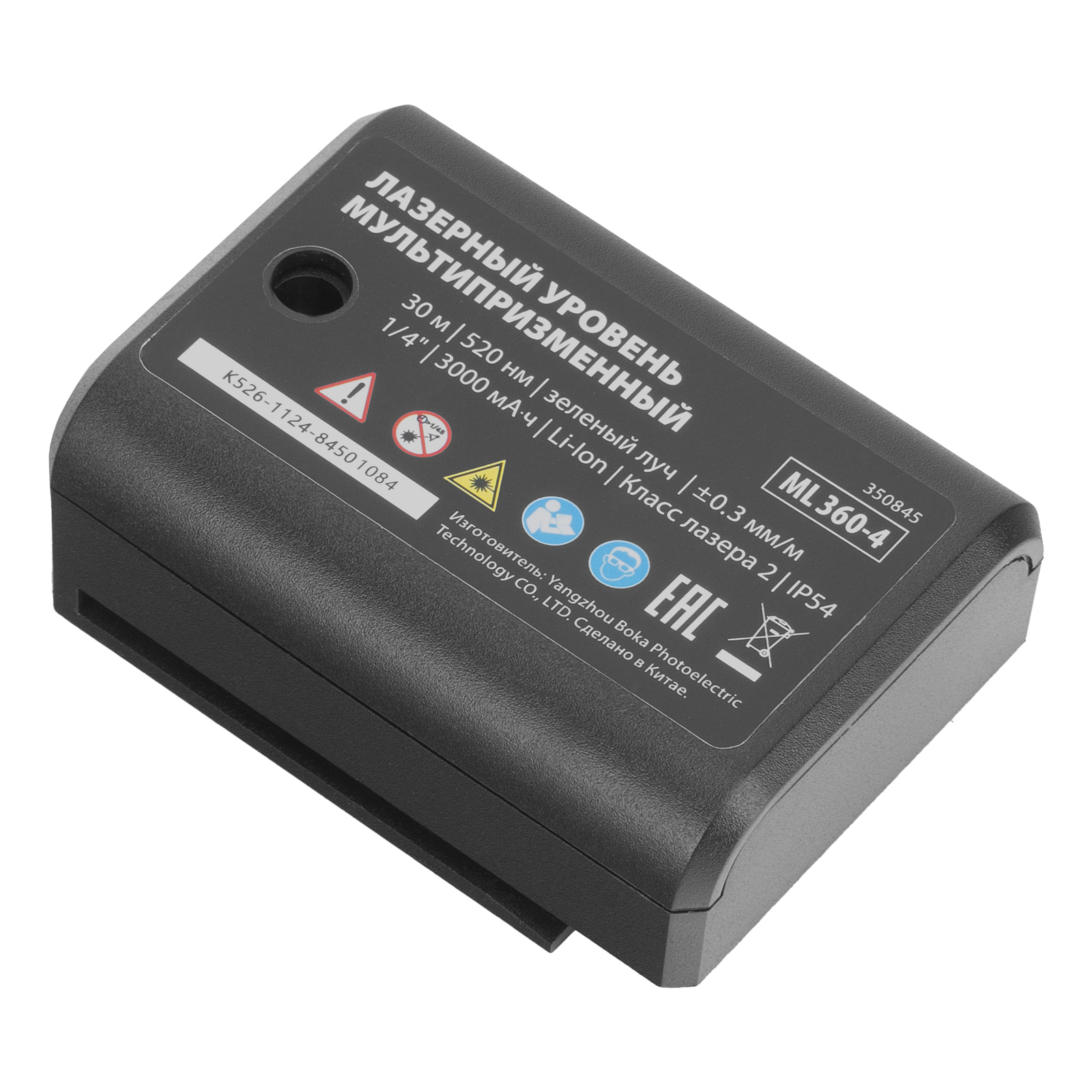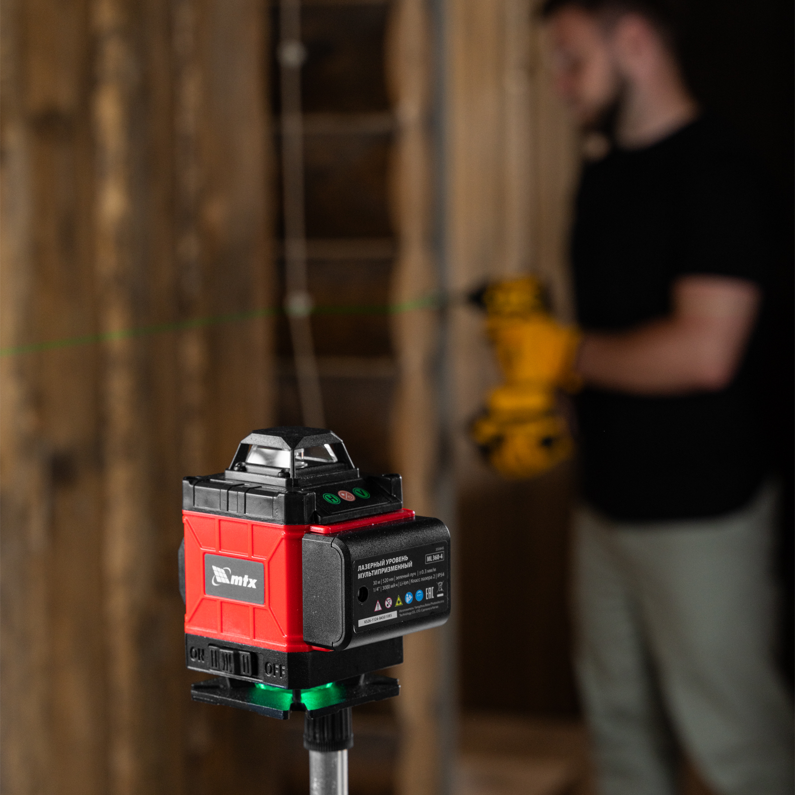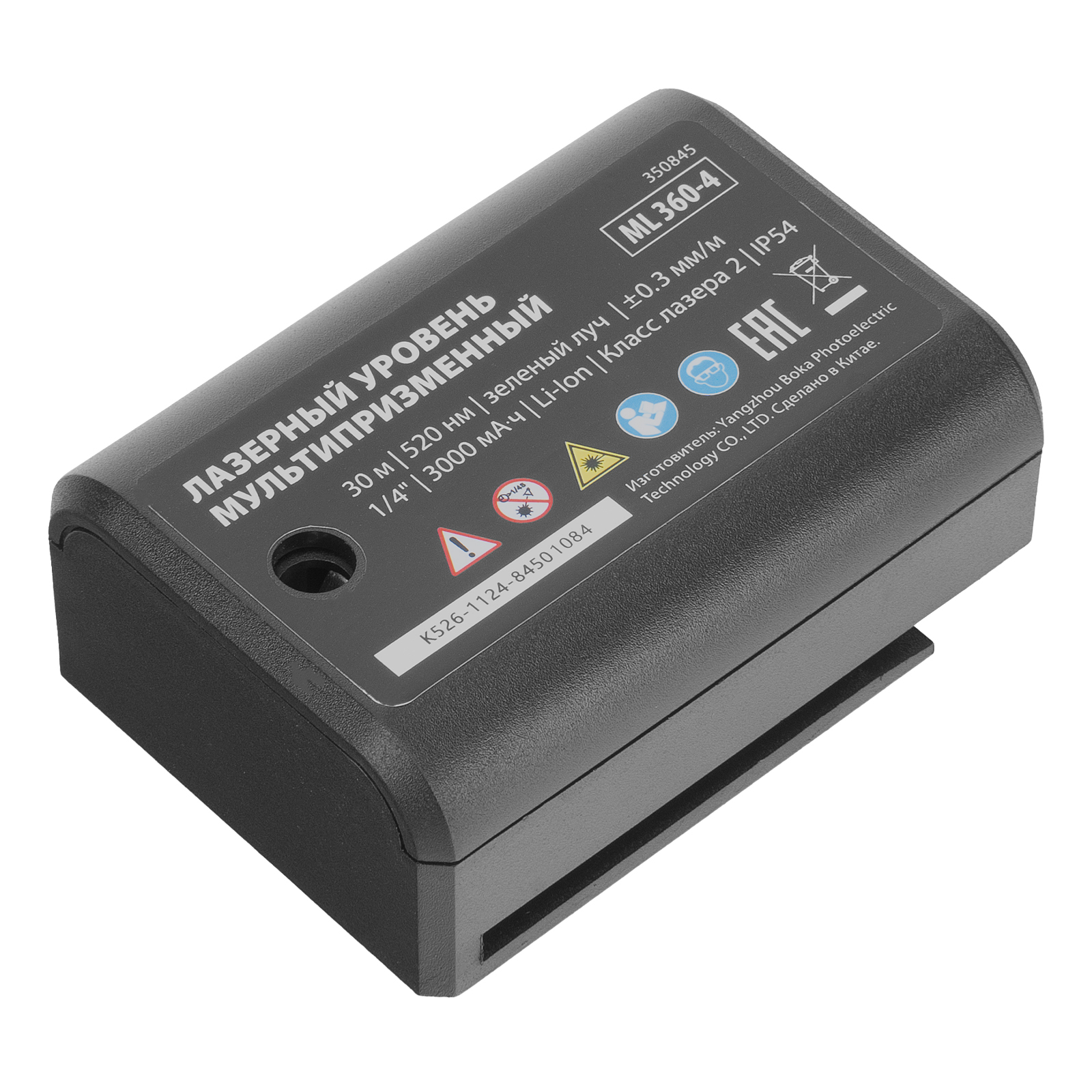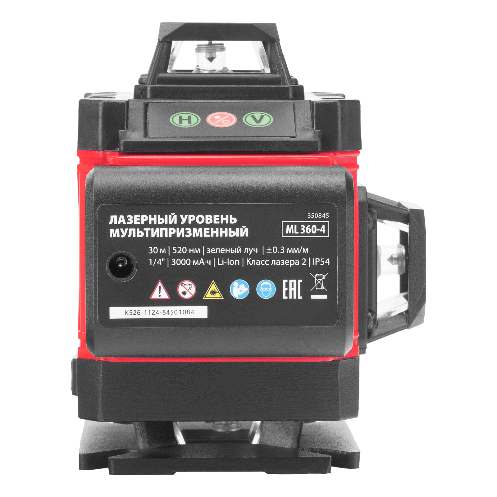 Мультипризменный лазерный уровень MTX ML 360-4 Pro SET 350845 состоит из 2 частей, работает от аккумулятора Li-Ion емкостью 3 А·ч и проецирует горизонтальную и вертикальную линии на расстояние до 30 метров при помощи зеленых лучей с длиной волны 520 нм. Позволяет выравнивать предметы и проводить разметку поверхностей. Точность построения линий составляет ±0,3 мм/м, угол развертки лучей — 360°, что позволяет эффективно решать поставленные задачи. Лазерный уровень значительно упрощает проведение работ по отделке помещений, установке окон, шкафов и т.д. Уровень можно использовать как в помещении, так и на улице (предусмотрен специальный режим OUTDOOR).