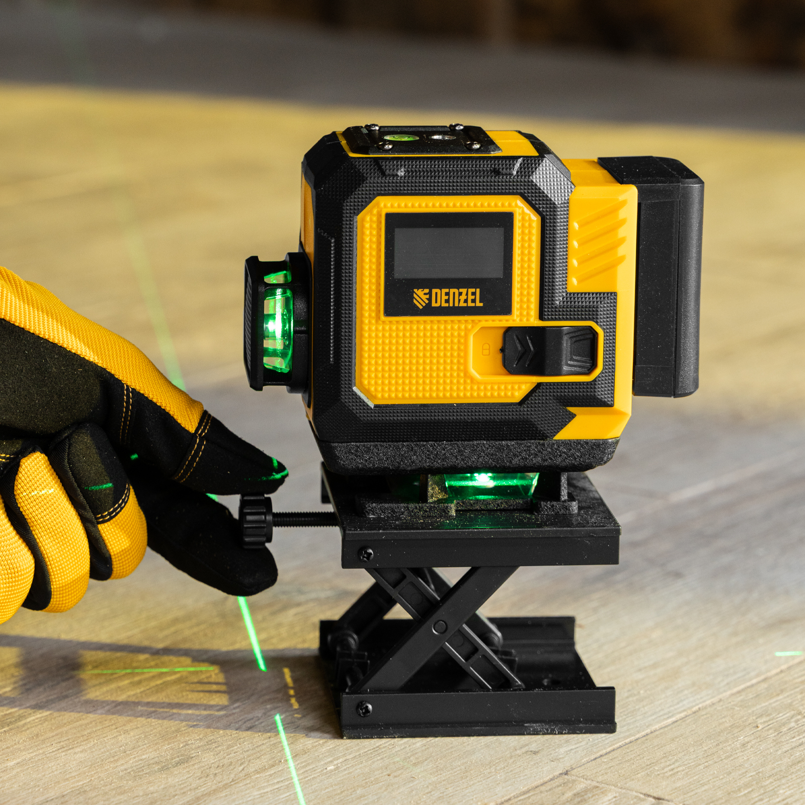 Мультипризменный лазерный уровень Denzel DLV-360-3C 35080 поставляется в кейсе, работает от аккумулятора Li-Ion емкостью 2,4 А·ч и проецирует горизонтальную и 2 вертикальные линии на расстояние до 30 м при помощи зеленых лучей длиной 520 нм. С его помощью можно нанести разметку и выровнять предметы относительно друг друга и земли с точностью до 0,3 мм/м. Угол развертки составляет 360°, что повышает удобство и эффективность работы. Прибор незаменим во время проведения строительных, ремонтных, отделочных работ, обустройства интерьера.