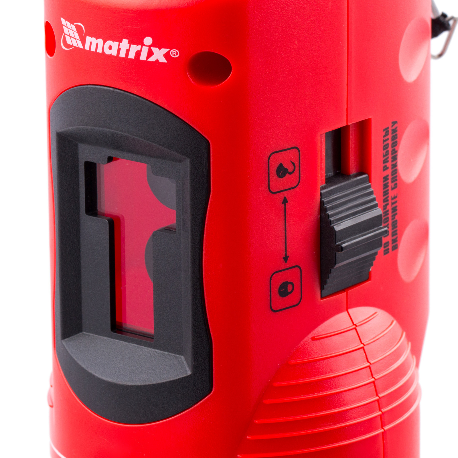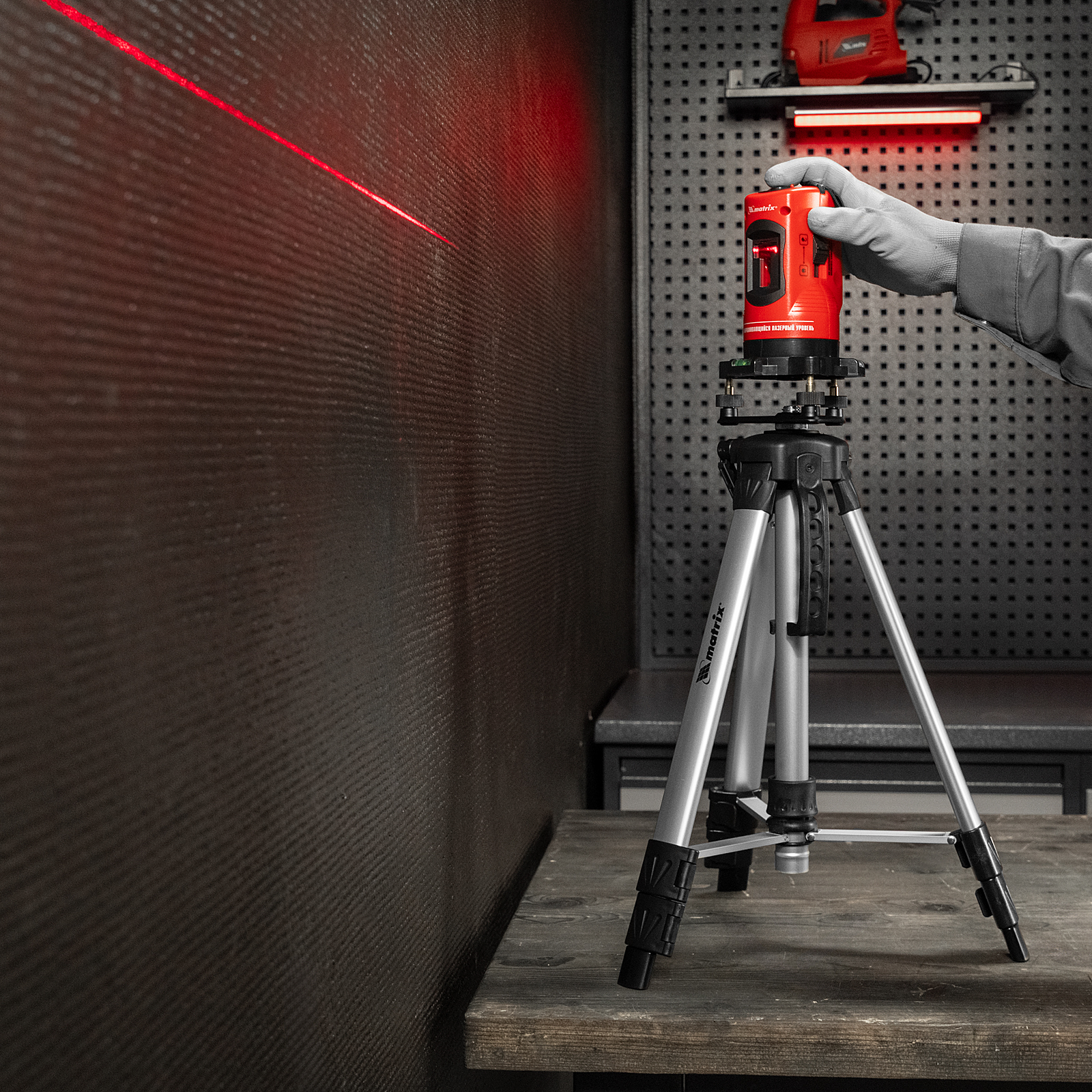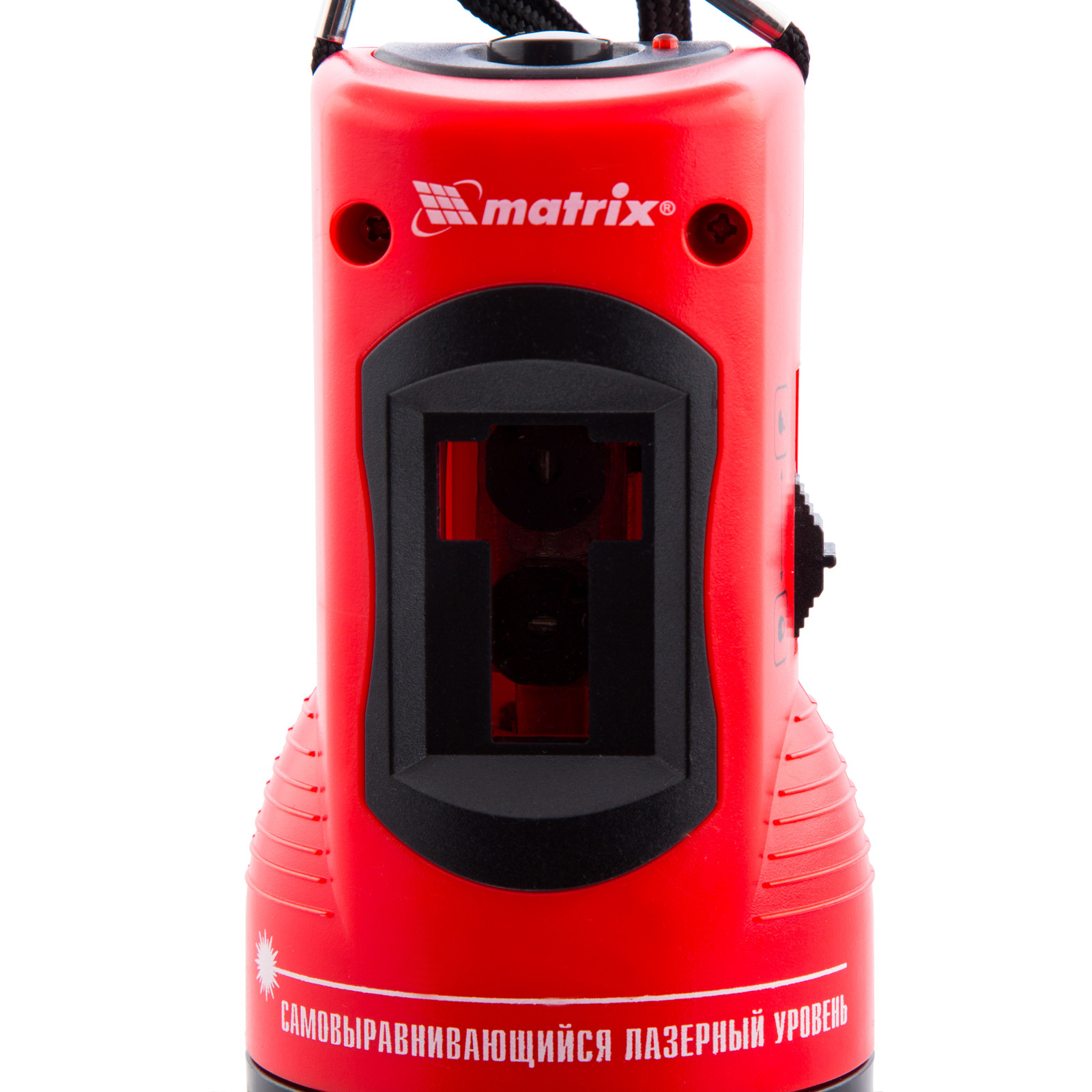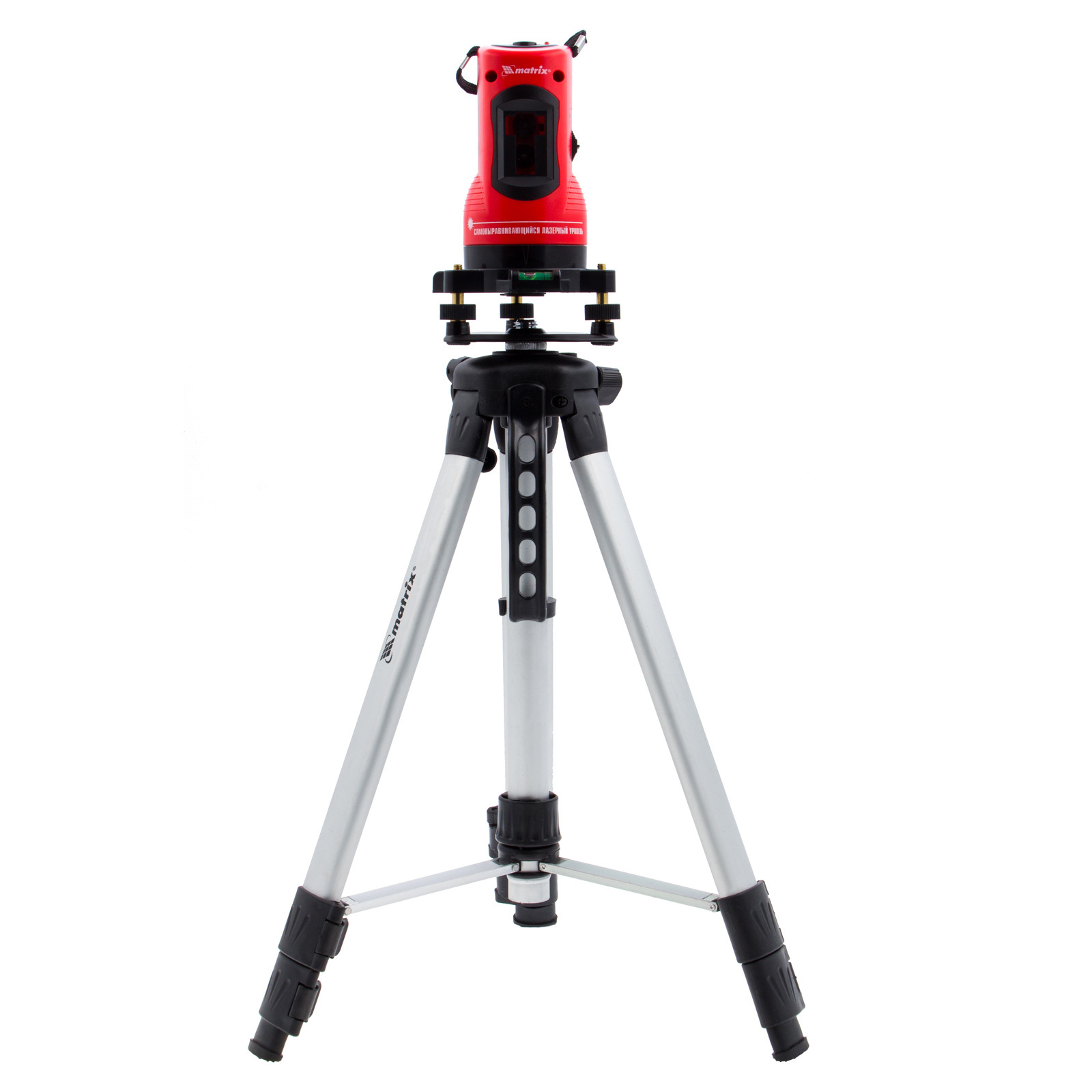 Самовыравнивающийся лазерный уровень Matrix 35033 размером 150 мм, поставляющийся в наборе со штативом 1150 мм в пластиковом кейсе, выстраивает проекции на плоскости: горизонталь, вертикаль или две сразу в виде креста. Инструмент облегчает проведение ремонтных, строительных, монтажных работ, декорирование помещений. Максимальная дальность проекции составляет 10 м, а лазерный луч одинаково хорошо виден в светлое и темное время суток, в помещениях и на улице.
