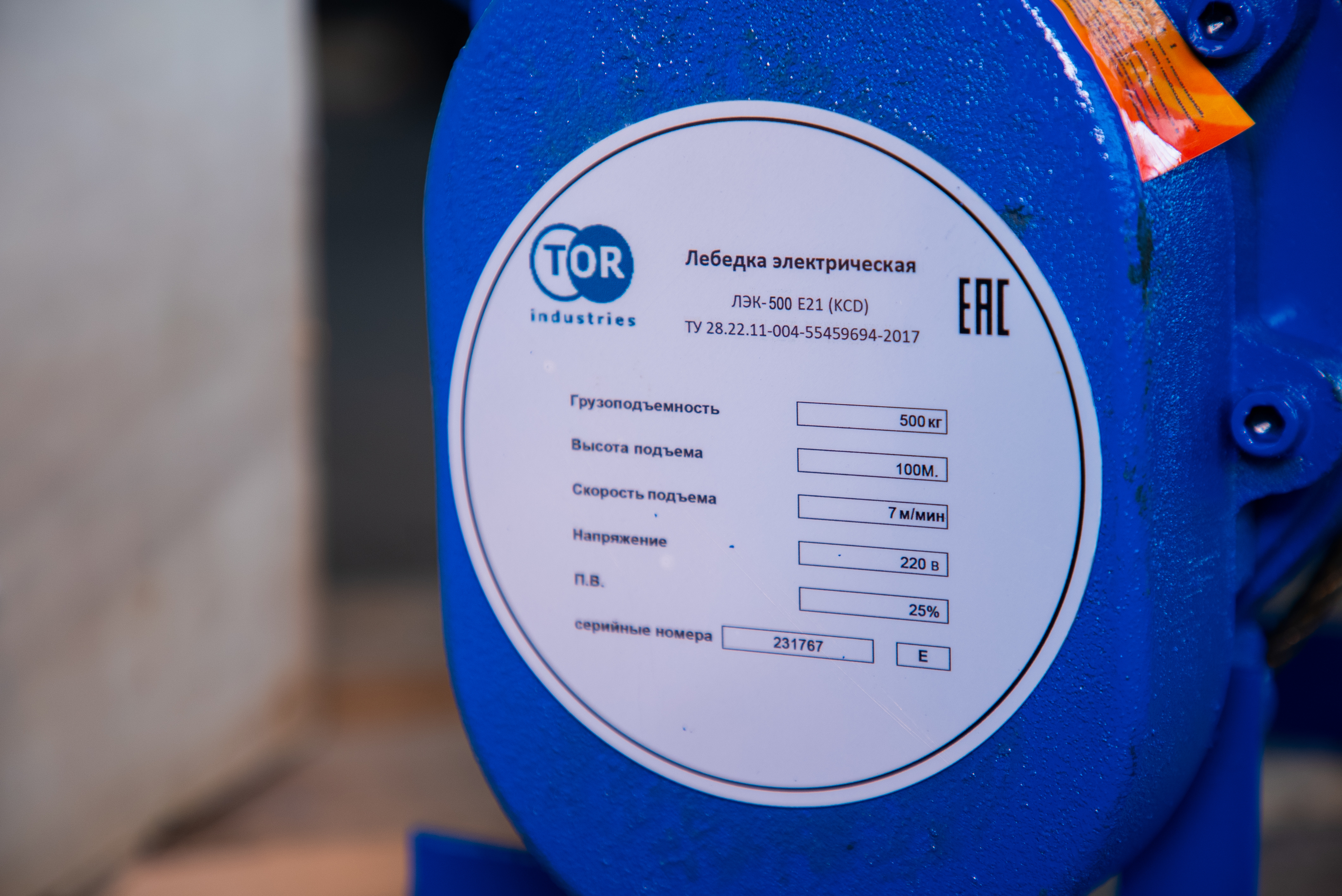 Лебедка TOR ЛЭК-500 E21 (KCD) 500 кг 220 В с канатом 100 м (T) рекомендована к использованию в быту и на промышленных объектах для работ с невысокой интенсивностью.
