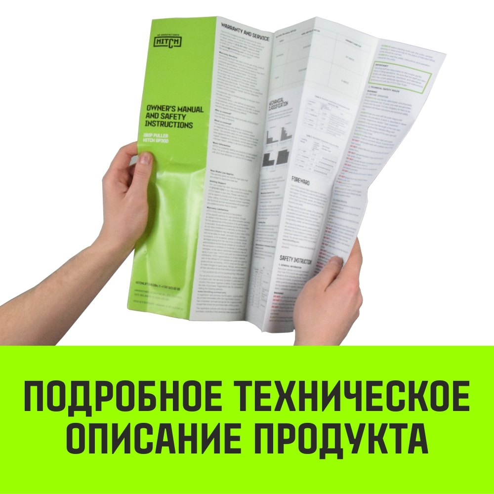 ■ Если есть вопросы, напишие нам на электронную почту: zakaz@npgportal.ru. . Стикер безопасности и краткая инструкция по эксплуатации размещены на изделии. Подробное техническое описание продукта в комплекте каждой лебедки. При условии нормальной эксплуатации изделия, компания HITCH гарантирует его соответствие заявленным техническим характеристикам и отсутствие дефектов в материале. Гарантия на изделие 1 год.