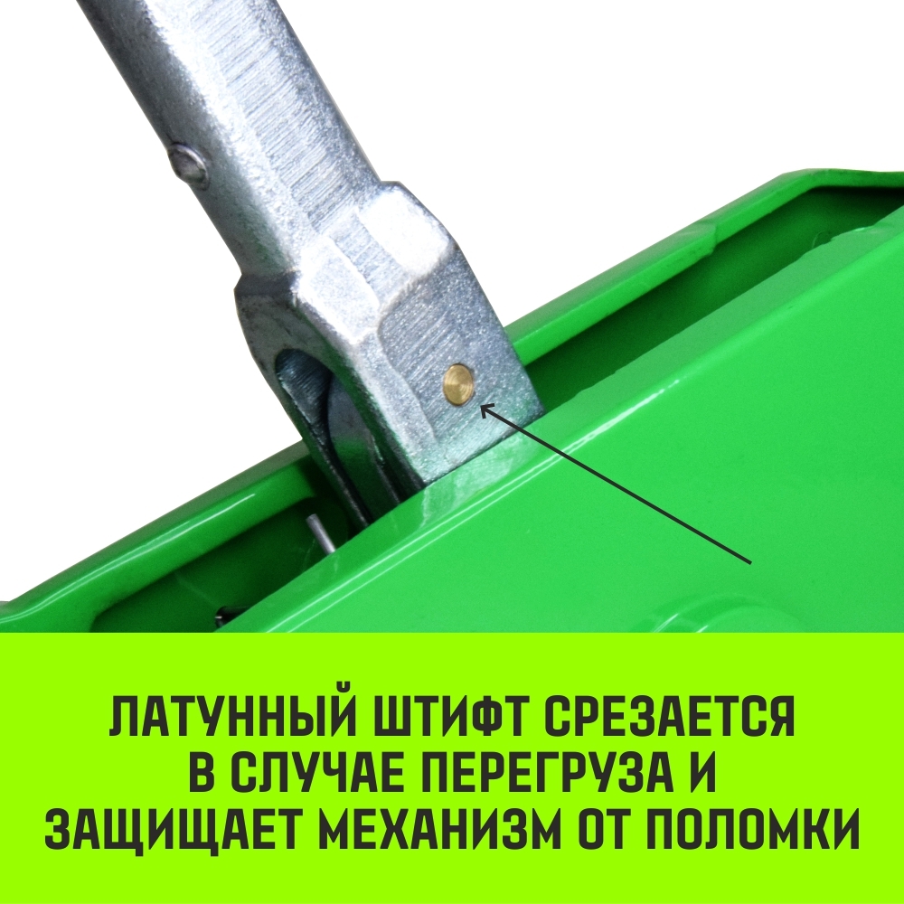 • Латунный штифт защиты от перегруза – при превышении допустимой нагрузки автоматически срезается, защищая механизм от поломки.