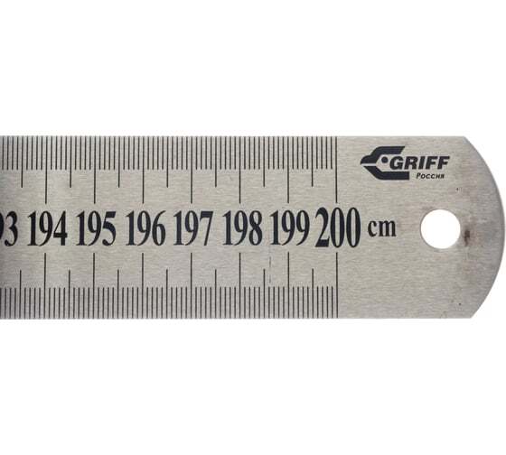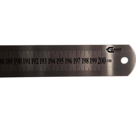 Линейка металлическая с двусторонней шкалой 2000х39 мм GRIFF D112026 используется при измерении внешних габаритов деталей. Инструмент выполнен из гибкого металла, что позволяет применять инструмент для определения параметров деталей различной кривизны.