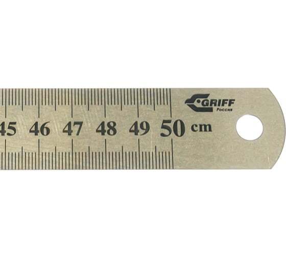 Линейка металлическая с двусторонней шкалой 500 х 27 мм GRIFF D112017 используется для измерений объектов различной формы: материал легко гнется. Разметка нанесена на обе стороны линейки, что упрощает проведение измерений.