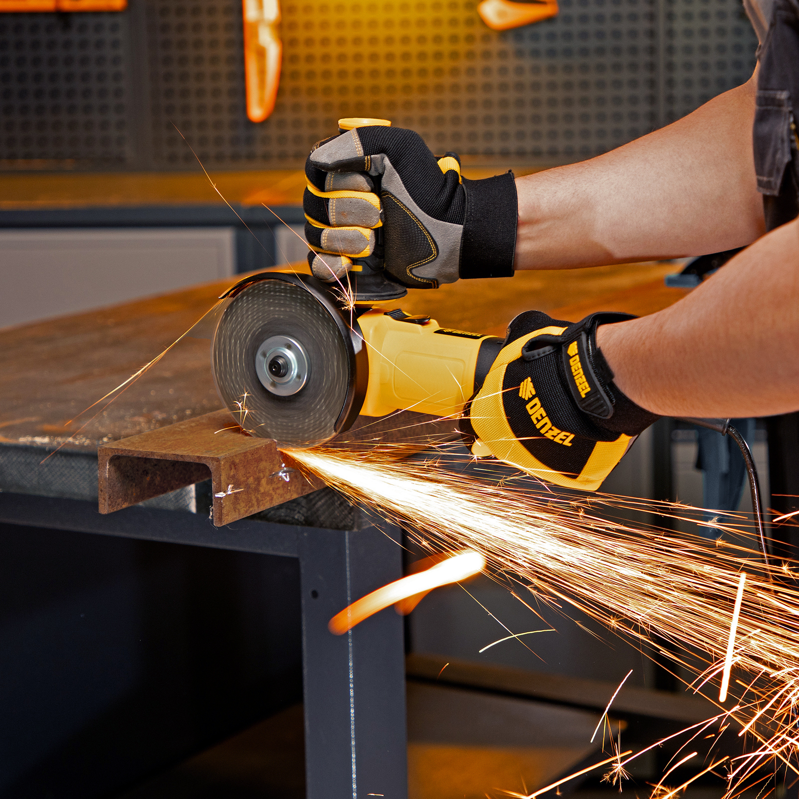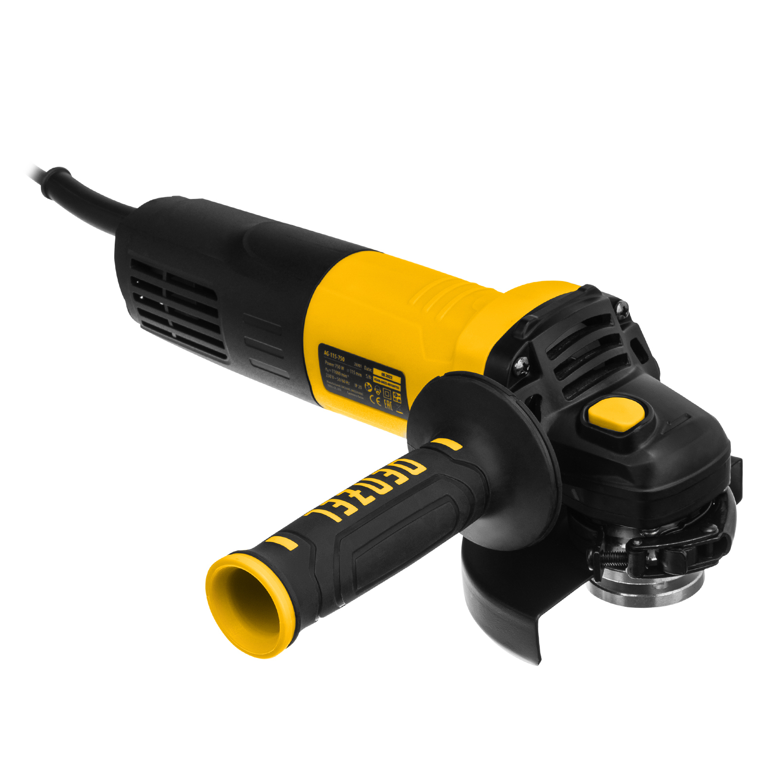Угловая шлифовальная машина Denzel AG115-750 26901 мощностью 750 Вт совместима с оснасткой максимальным диаметром 115 мм, поддерживает частоту вращения шпинделя 11000 об/мин, благодаря чему эффективно справляется с обработкой и зачисткой поверхностей, а также резкой, шлифовкой металла толщиной до 30 мм и камня. Пригодится дома, в гараже и на даче.