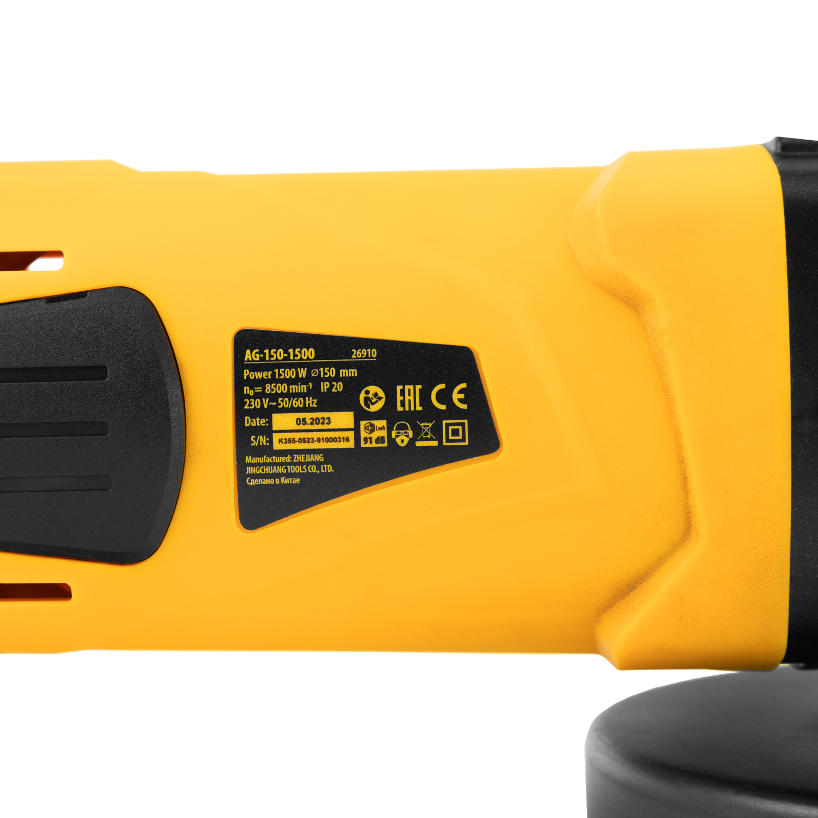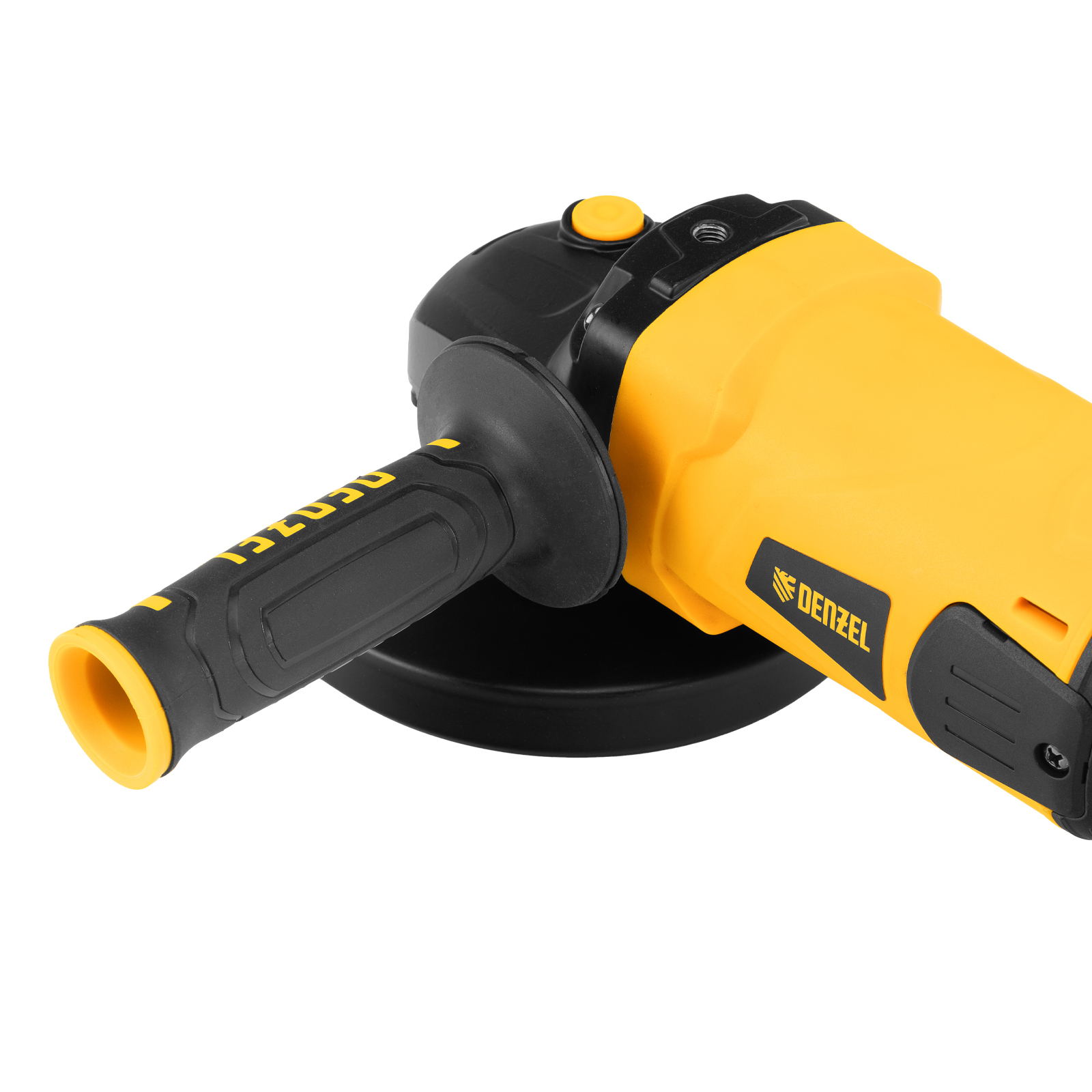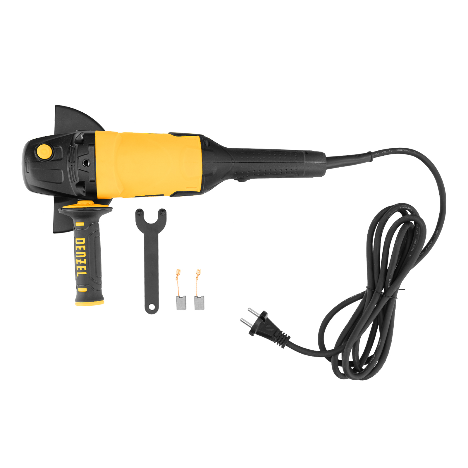 Угловая шлифовальная машина Denzel AG150-1500 26910 мощностью 1500 Вт совместима с насадками максимальным диаметром 150 мм, поддерживает частоту вращения шпинделя 8500 об/мин, благодаря чему эффективно справляется с обработкой и зачисткой поверхностей, а также резкой, шлифовкой металла толщиной до 50 мм и камня. Пригодится дома, в гараже и на даче.