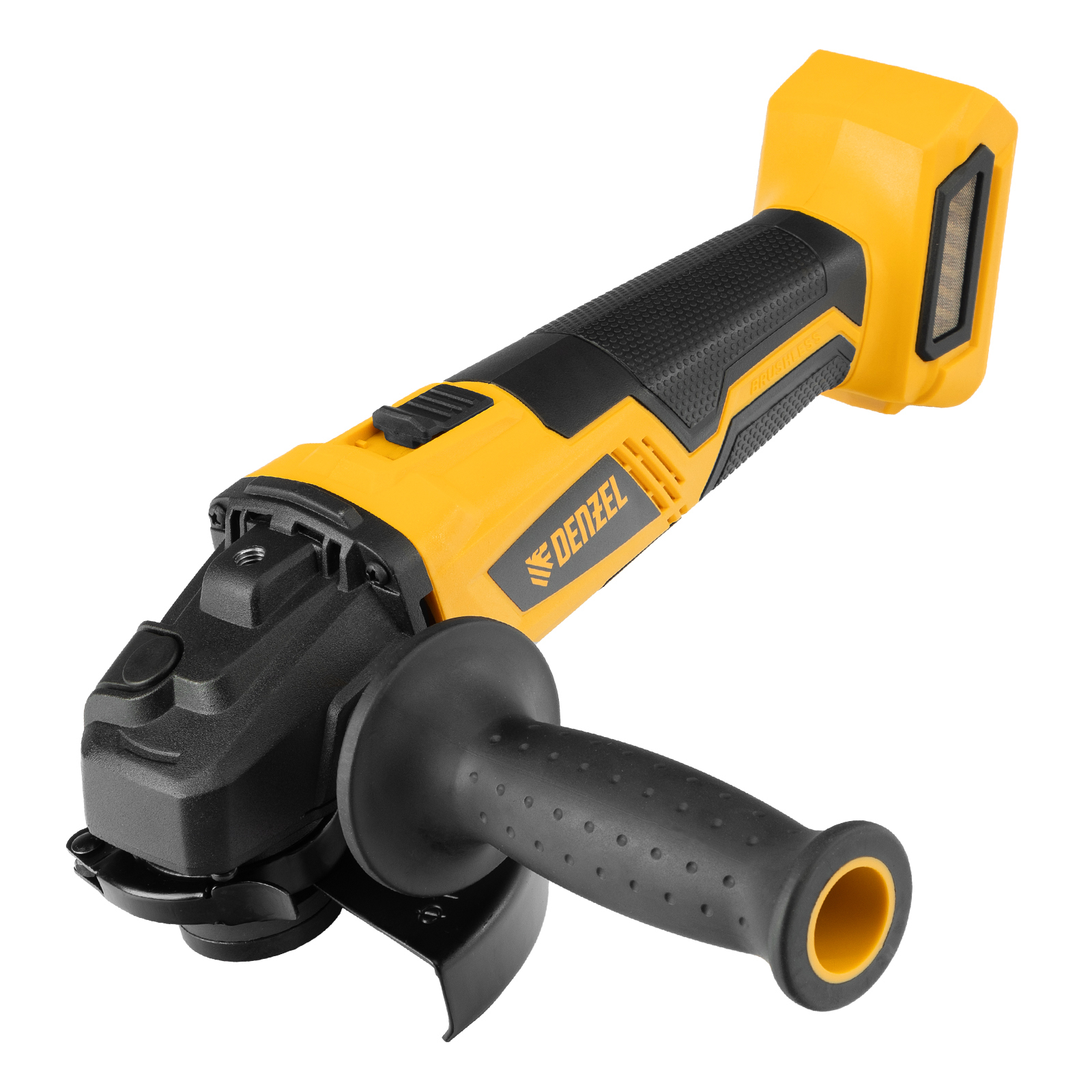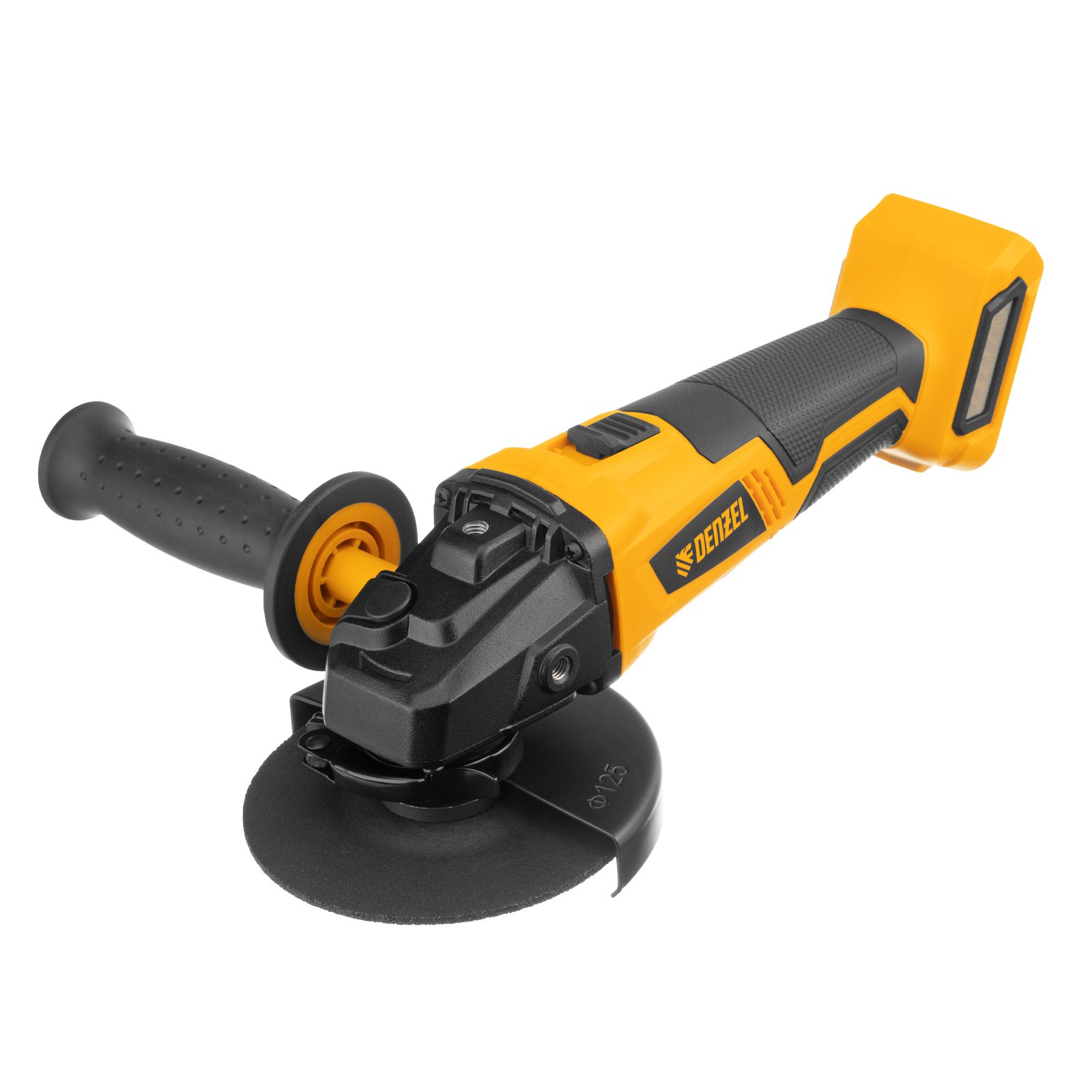 - Универсальность — к УШМ подходит аккумулятор 4Ач Li-ion, совместимый с любым инструментом 18V Denzel battery system серии IB (в комплект поставки не входит).