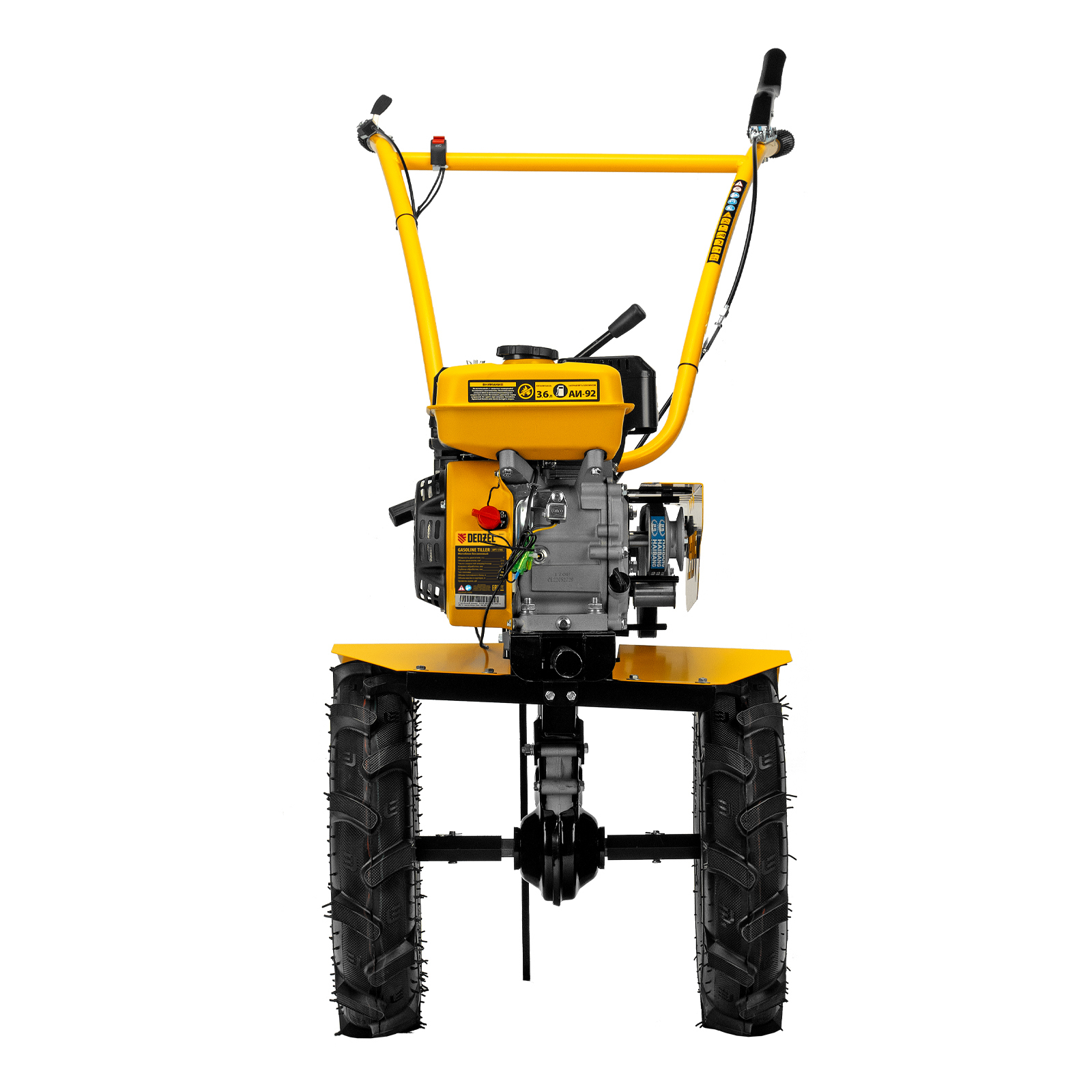 - Удобная работа — основные элементы управления расположены на рукоятках, для включения сцепления и регулировки оборотов двигателя не нужно наклоняться.