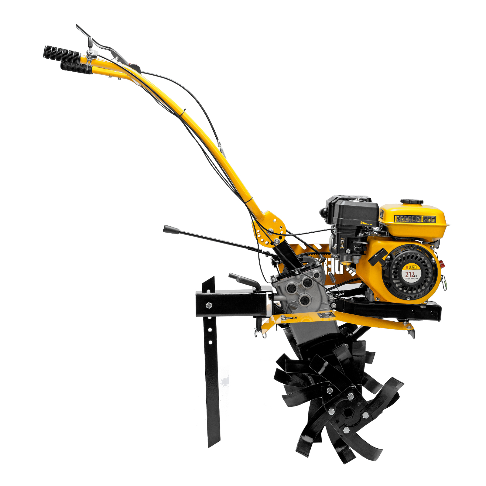 - Настраиваемая глубина вспахивания — отрегулировав сошник по высоте, можно задать степень погружения фрез до 350 мм.