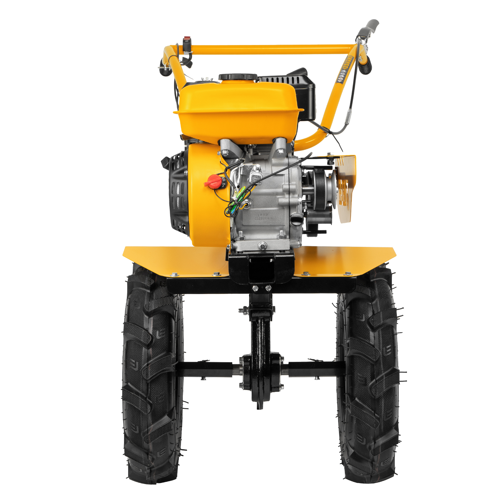 - Легкое управление — регулятор оборотов и выключатель зажигания расположены на рукоятках, это позволяет быстро менять скорость на участках разной сложности.