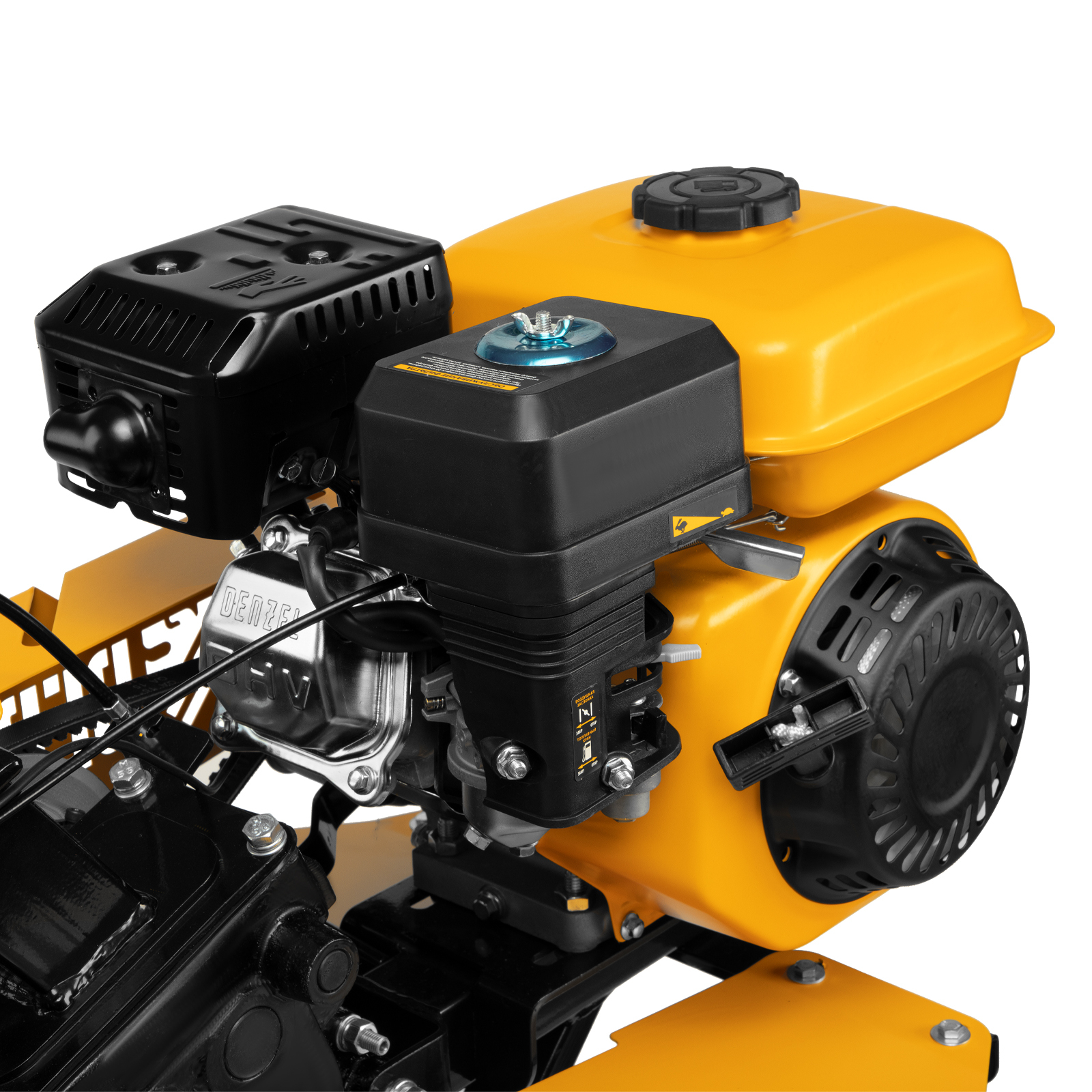 Мотоблок Denzel DPT-270 56402 предназначен для больших территорий площадью от 15 соток. Благодаря мощности 7 л.с. и острым фрезам он без труда вспашет целину, справится с глинистой почвой, обработает даже вязкий грунт. 3 скорости работы обеспечивают легкое переключение в процессе культивирования, а вес более 60 кг позволяет достигать глубины обработки до 35 см.,Модель отличается универсальным сцеплением, что делает возможным присоединение практически любого навесного оборудования, представленного на рынке: для уборки территории, скашивания травы, посадки и сбора урожая и т.д. Для крепления активного навесного оборудования предусмотрен шкив отбора мощности.
