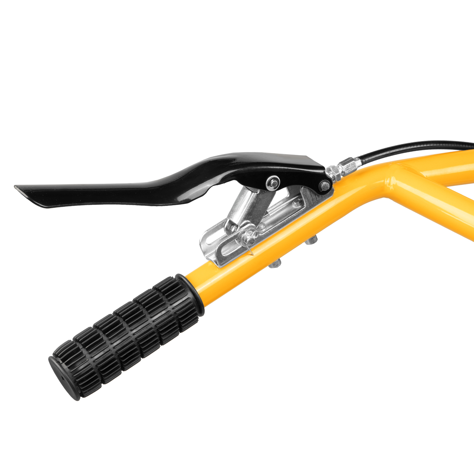 - Комфортная работа — рукоятки находятся на оптимальном расстоянии друг от друга, имеют прорезиненные наконечники, гасящие вибрации, а для большей прочности укреплены поперечной балкой.