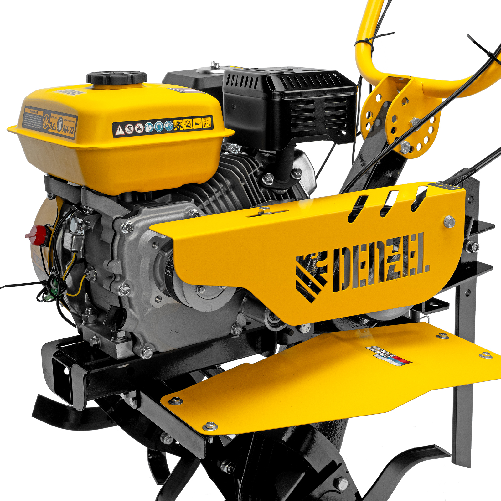 - Безопасность пользователя — защитные крылья предотвращают вылет комьев земли и других предметов.