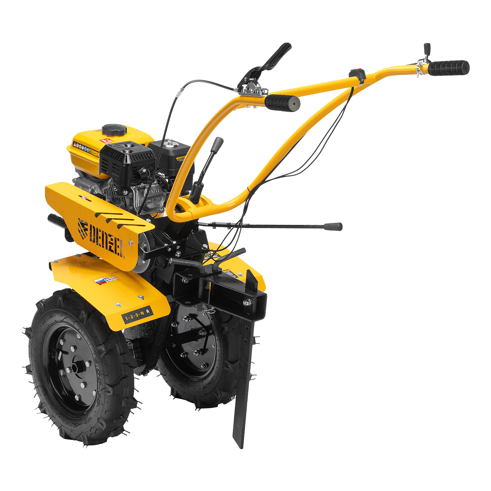 - Эффективная работа на любых типах грунта — мотоблок оснащен мощным и экономичным OHV-двигателем Denzel Long Life и стальными закаленными фрезами, не требующими заточки в течение всего срока эксплуатации.