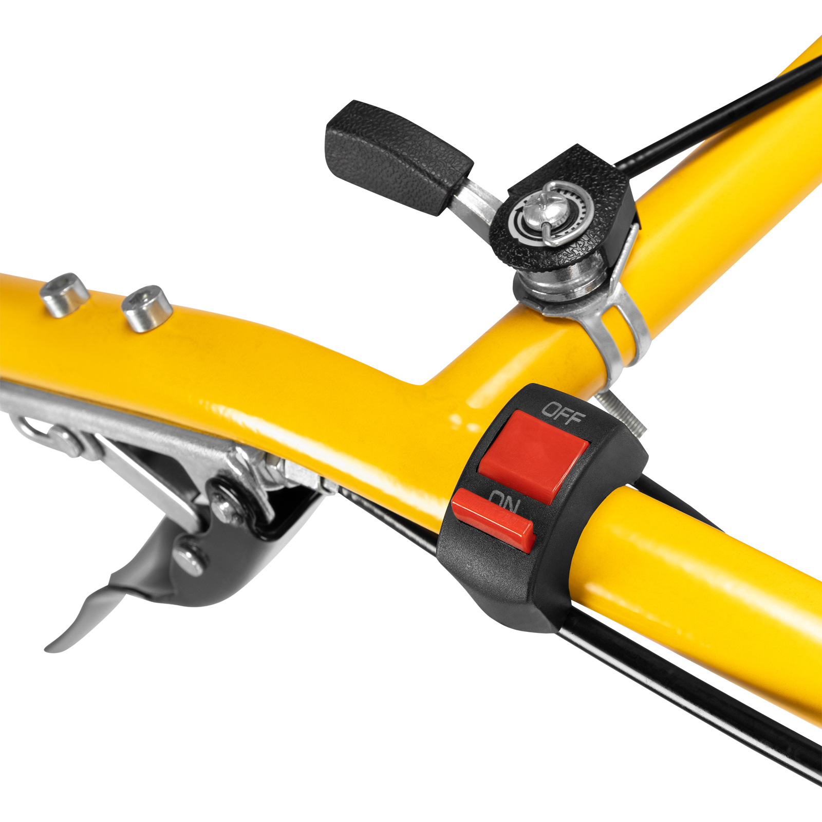 - Удобное управление — регулятор оборотов двигателя и рычаги сцепления расположены на руле, руль регулируется в двух плоскостях.