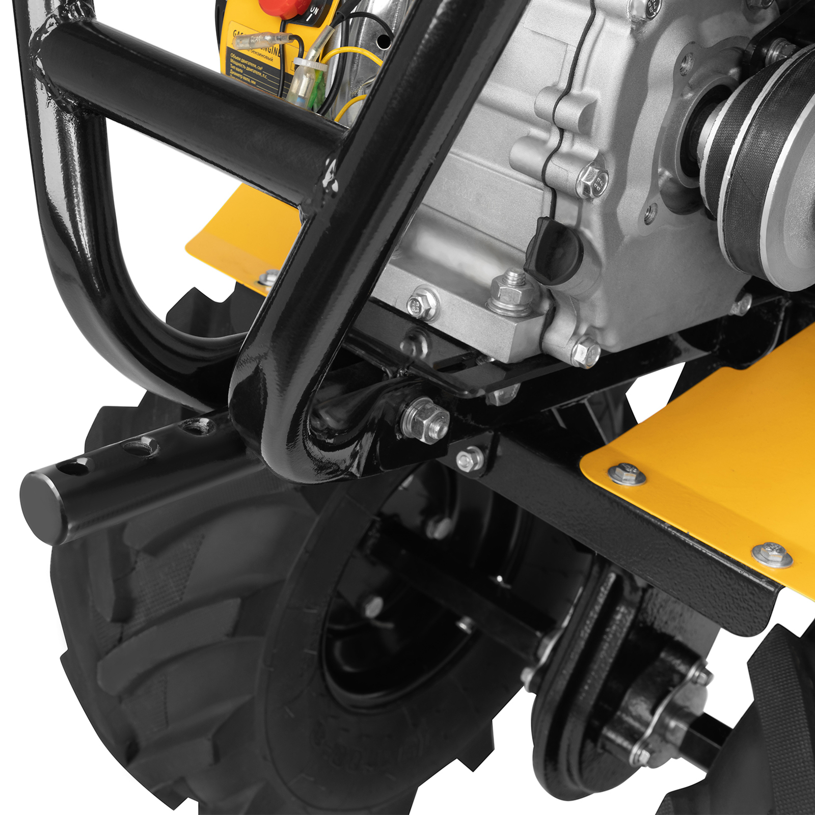 - Усиленная рама — ключевые узлы надежно защищены, мотоблок удобно транспортировать.