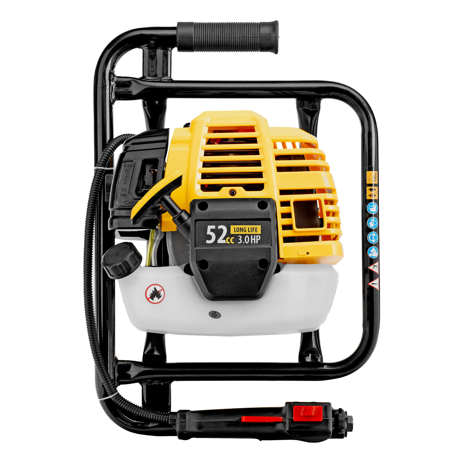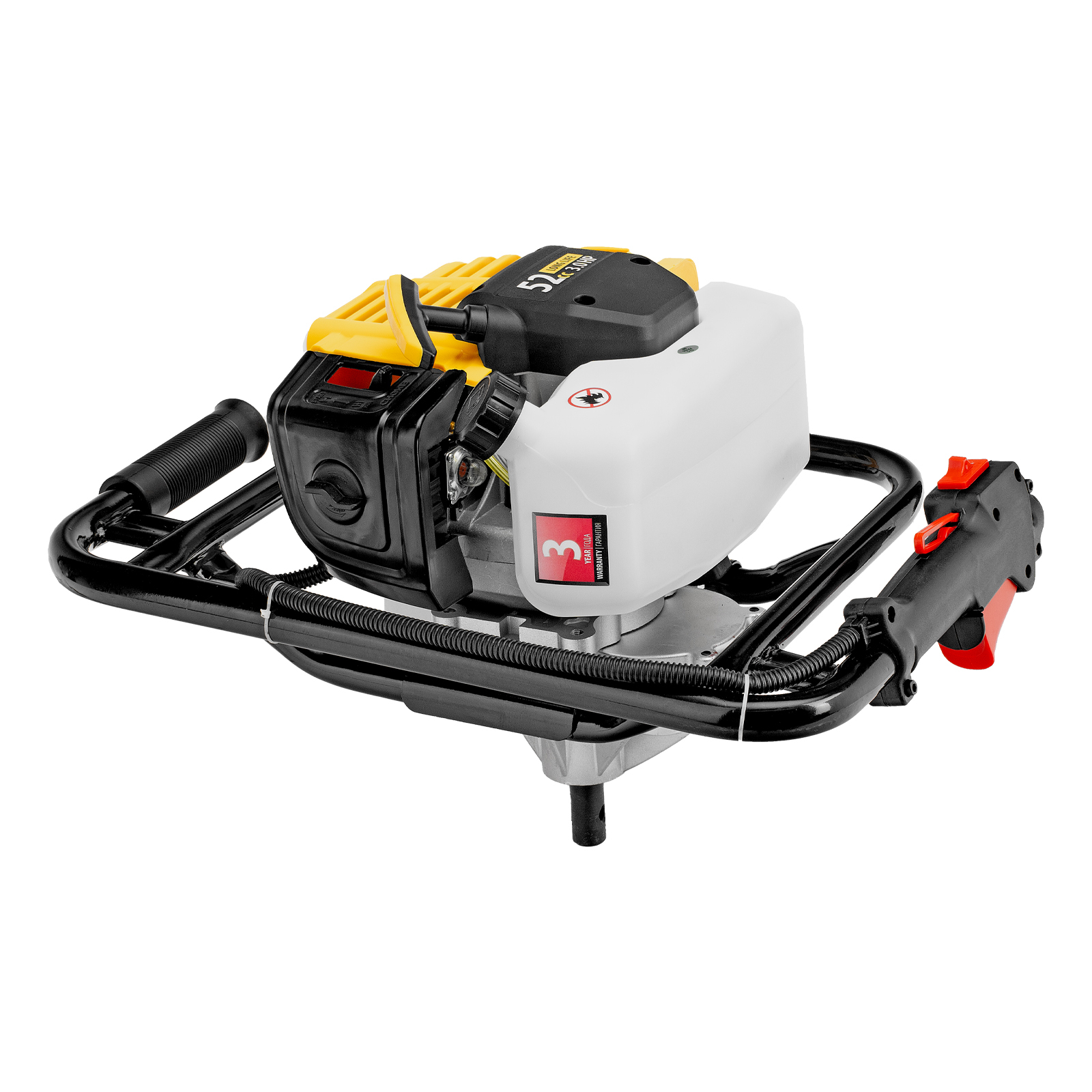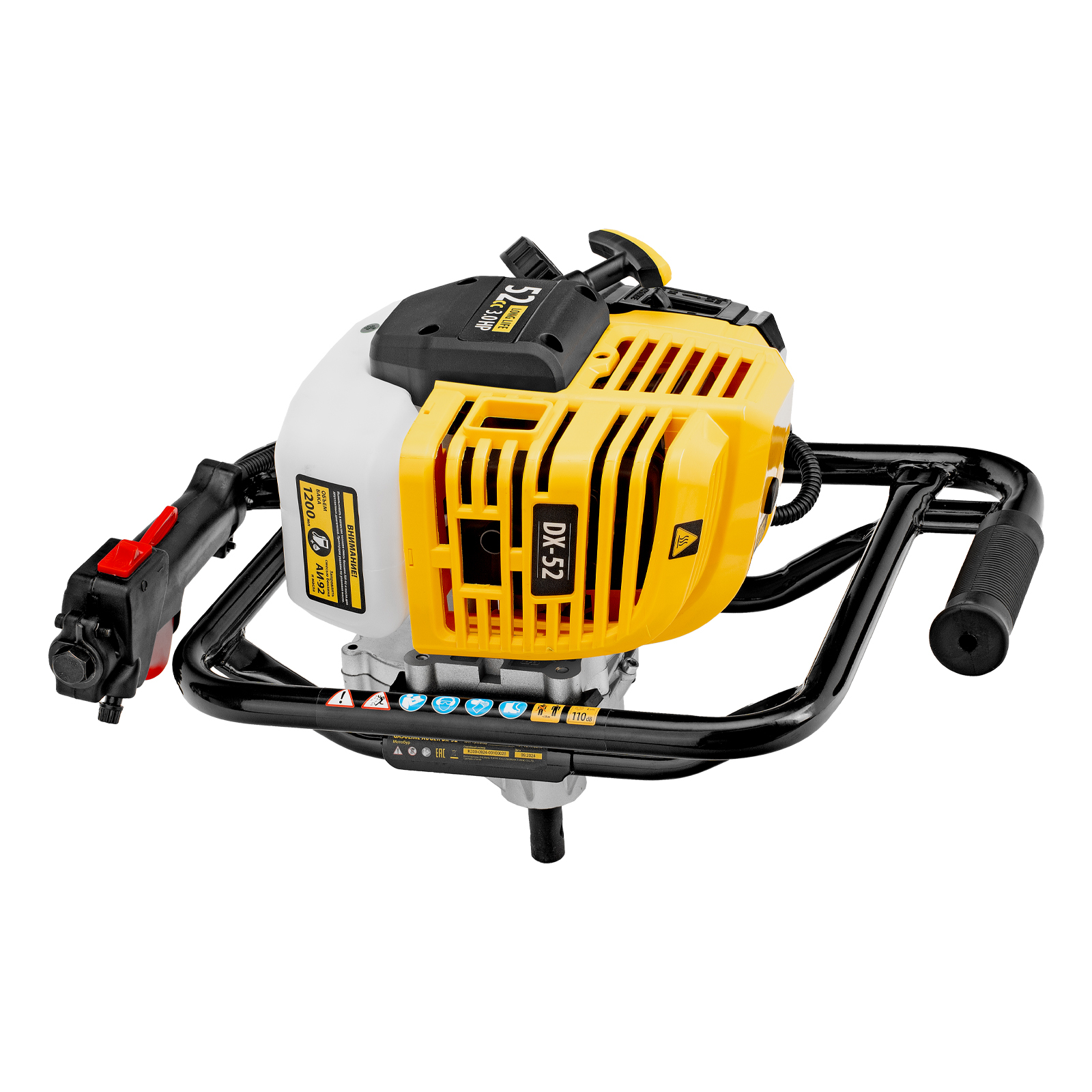 Мотобур Denzel DX-52 56001 с объемом двигателя 52 см3 и диаметром соединения 20 мм предназначен для получения отверстий и углублений во льду или в грунте максимальным диаметром 300 мм. Мощный и экономичный двигатель мощностью 3 л. с. позволяет эффективно решать поставленные задачи. Для бурения отверстий диаметром более 150 мм и глубиной более 1 м предусмотрена возможность управления мотобуром двумя пользователями. Устройство будет полезно на строительной площадке, загородном участке, пригодится также во время зимней рыбалки.