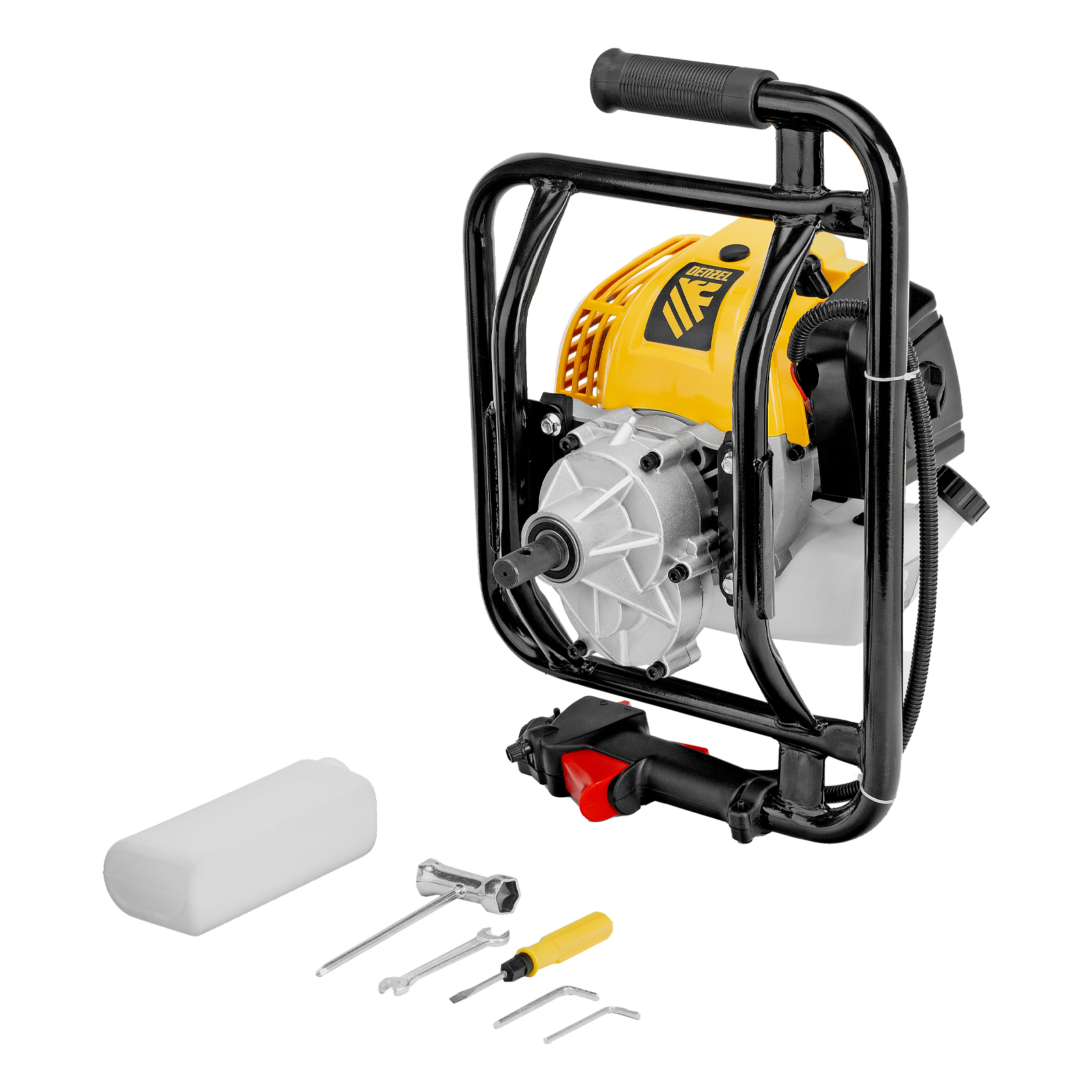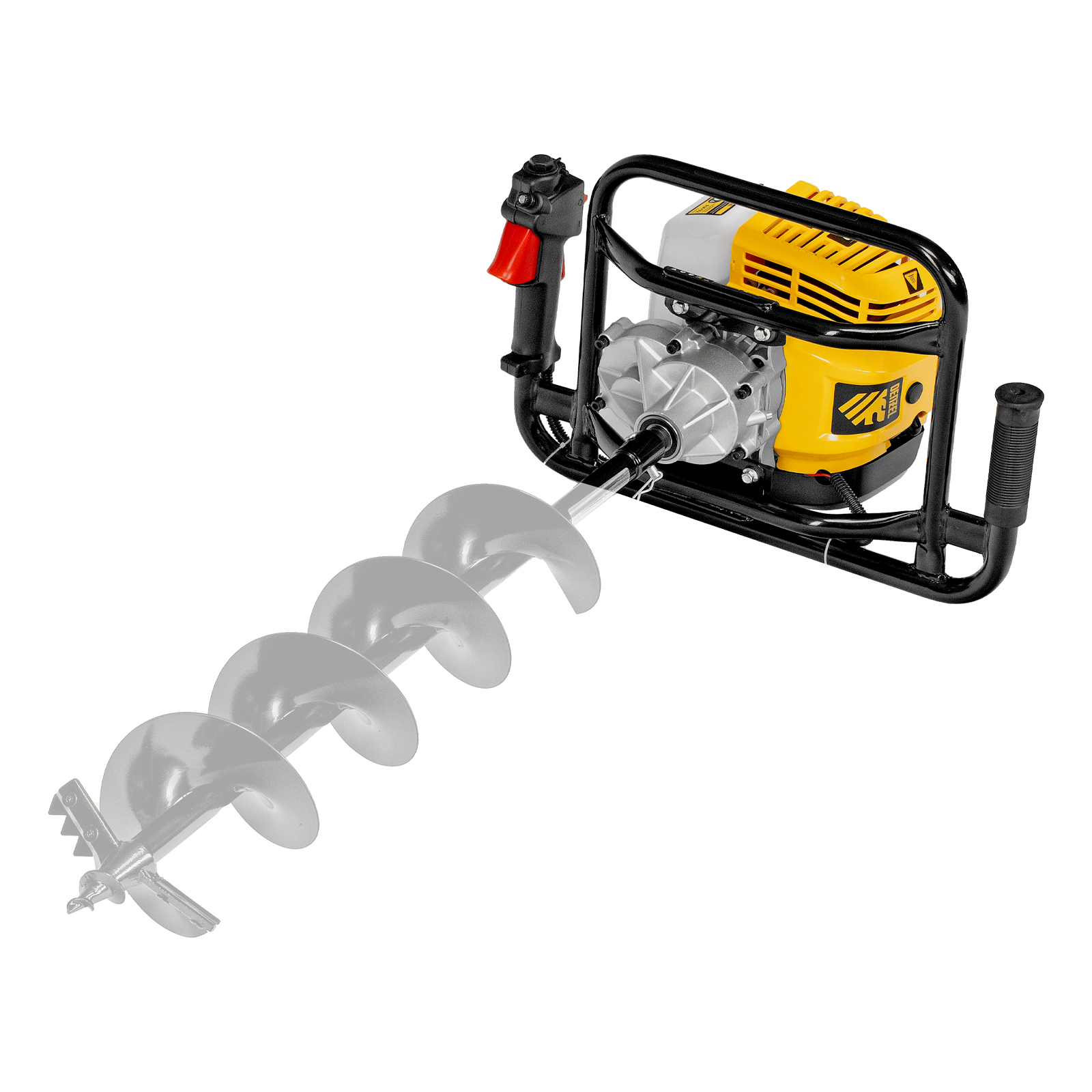 - Быстрая подготовка к работе — мотобур поставляется в сборе, достаточно добавить смазку при необходимости, установить шнек и залить топливо в бак (шнек в комплект не входит).