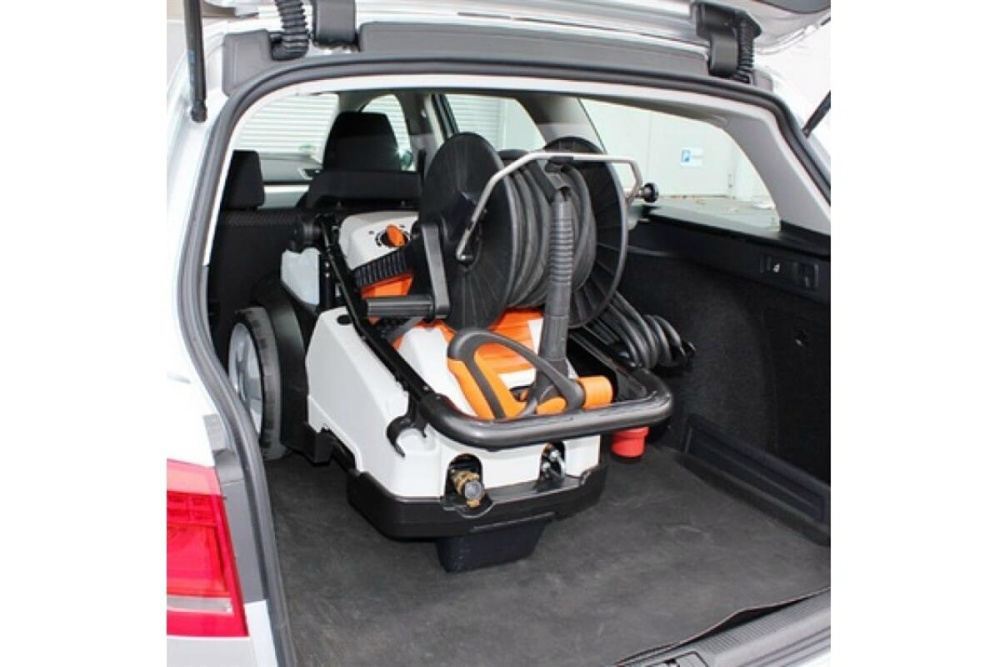 В конструкции имеется встроенный барабан, который облегчает хранение напорного шланга.