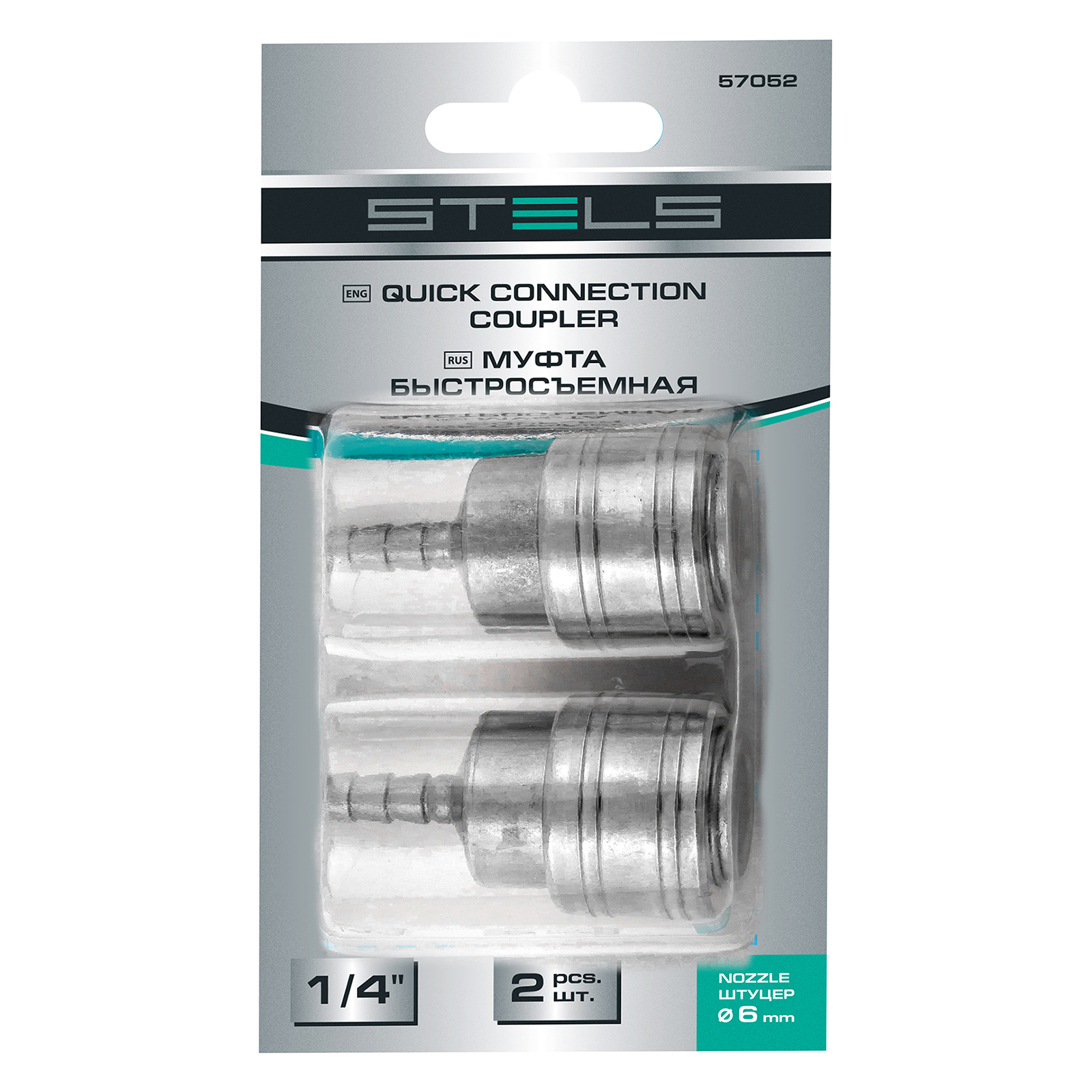 Универсальная быстросъемная муфта Stels 57052 типа «мама», со штуцером «елка» предназначена для подключения краскораспылителя, нейлера, продувочного пистолета и других пневмоинструментов к компрессору при помощи шланга диаметром 6 мм. Соединение Рапид (Евро) обеспечивает простую стыковку с инструментом, а штуцер «елочка» — со шлангом. Муфта используется при проведении строительных и ремонтных работ.