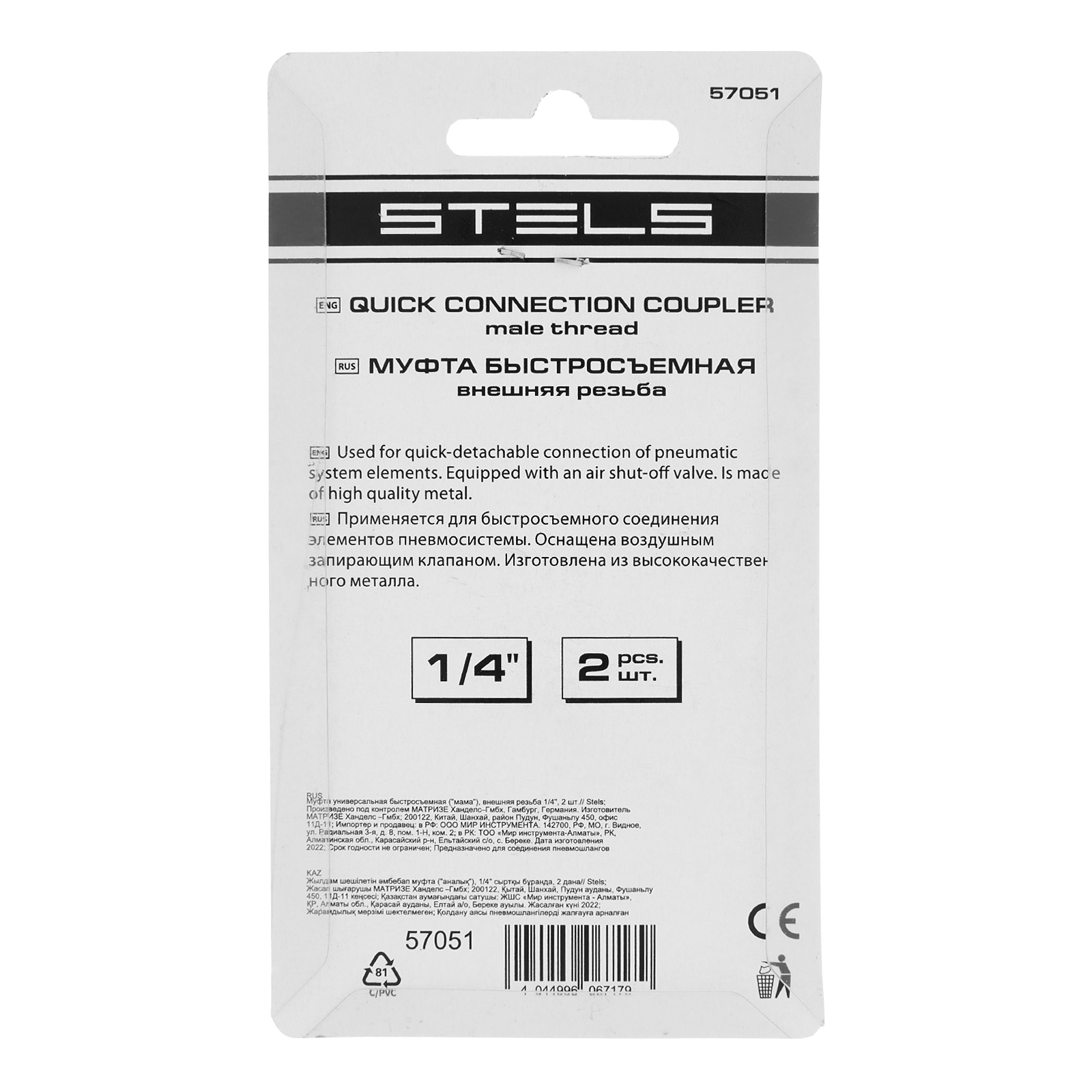 Универсальная муфта Stels 57051 типа «мама», с внешней резьбой 1/4″ используется для быстросъемного соединения выходного отверстия компрессора с пневматическим шлангом. Подключение не занимает много времени, с ним справится даже начинающий пользователь. Муфта используется при проведении строительных и ремонтных работ.