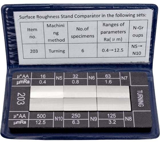 Набор образцов шероховатости поверхности из 6шт, Ra 0.4 - 12.5 GRIFF D125011 разработан для визуального и тактильного сравнения поверхностей, с различным качеством и точностью обработки. В наборе имеются образцы, полученные путем точения.