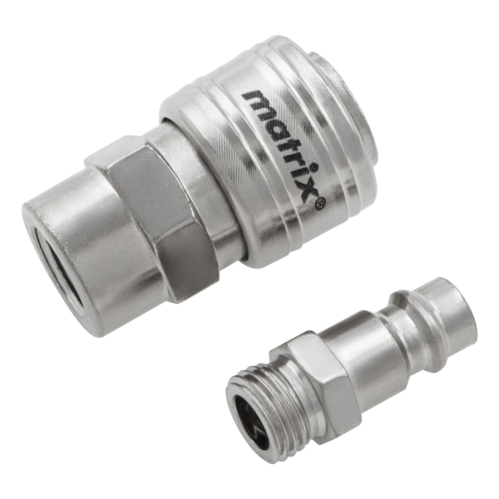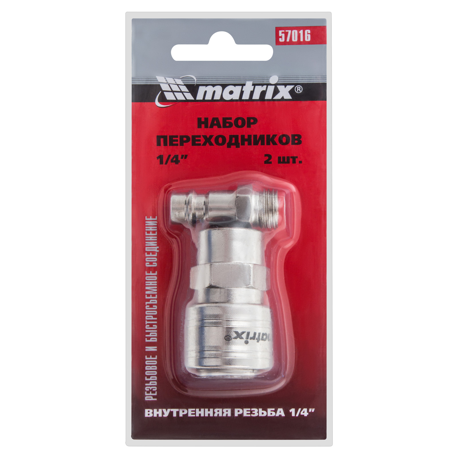 Набор переходников Matrix 57016 обеспечивает подключение элементов пневмосистемы с разным типом крепления. Он позволяет просто перейти с быстросъемного соединения на резьбовое и надежно соединить компрессор с пневматическим инструментом. Набор состоит из двух аксессуаров: ниппеля Rapid (Euro) типа «папа» и муфты Rapid (Euro) типа «мама» с диаметром внутренней резьбы 1/4″.